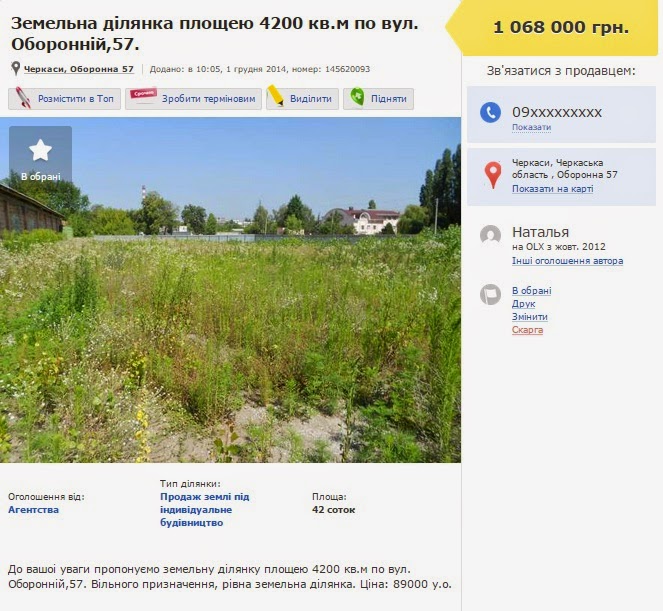 П’ять днів тому я випадково побачив проекти відповідних рішень виконкому і першим оприлюднив їх зміст! На сьогодні питання набуло широкого розголосу. А причина цьому, переконаний, - ціна питання! Для прикладу, аналогічна ділянка по вул. Оборонній, 57 на 42 сотки продається неподалік за 1068 000 грн. Відповідно, якщо обрахувати вартість майже десяти гектарів землі, що просить забудовник безкоштовно, то її ринкова вартість сягає 25 мільйонів гривень!!! Чи доцільно в такому разі віддавати землю безкоштовно?