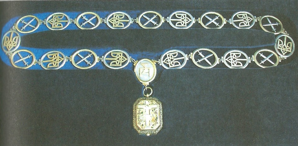 Цей ажурний золотий нагрудний ланцюг (див. фото №1) зі старовинною християнською ладанкою гетьмана Івана Мазепи і з вензелем Симона Петлюри на центральній ланці з мечами у часи новітньої Незалежності не побоявся використати під час інавгурації лише третій президент – Віктор Ющенко, який знає і любить історію, бо і батько, й мама у нього реальними вчителями були. Можливо, так зробить і той, хто зіграв у кіно роль вчителя історії, який став президентом?
