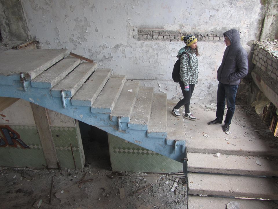 А зараз місто нагадує декорації для зйомок фільму жахів. Коли ми зайшли в першу покинуту багатоповерхівку, мене почало трясти від того, що все це надто нагадувало фільми, які я так не люблю. Я навіть порахувала скільки нас людей, щоб помітити, коли люди почнуть по одному зникати.