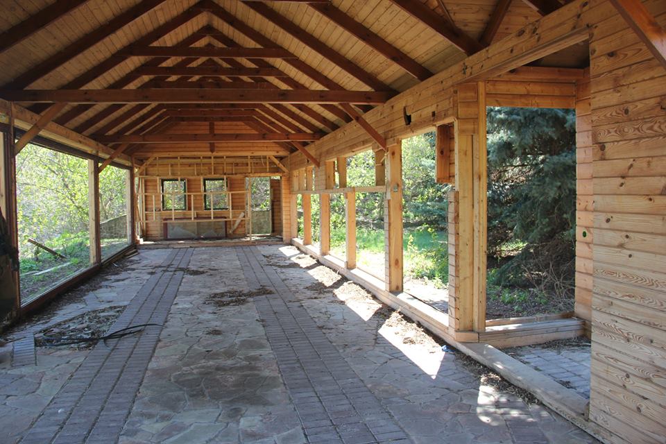 Наблизившись на відстань 5 – 7 метрів знову почали фотографувати територію навкруги. З будинку відразу вийшла молода дівчина віком 20-25 років і в агресивній формі заявила, що це приватна власність, де перебувати і фотографувати заборонено. На питання хто вона така і на яких правах перебуває на території, хто власники будинків дівчина відповідати відмовилась, натомість витягла телефон, зробила кілька дзвінків і погрожувала визвати поліцію. Не в змозі побудувати розмову із невідомою мешканкою будинку всі четверо відвідувачів пішли вглиб території піонертабору. Оглянувши напівзруйновані приміщення спальних корпусів піонертабору всі направились до великого ангару – літнього кінотеатру. В цьому приміщенні було виявлено 5-7 обдертих свинячих шкір, які валялись на підлозі та жмутки шерсті довкола.
