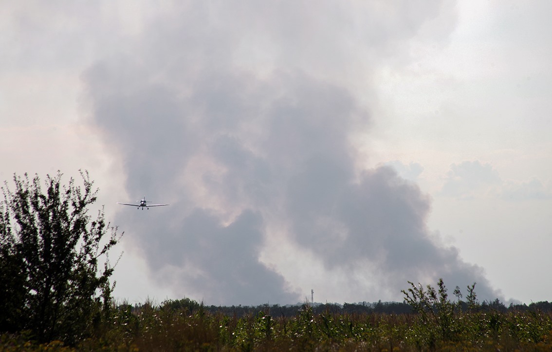 Літак заходить на посадку, а позаду нього, на весь обрій горить – ні, не літак (ними керували майстерні пілоти), а стерня, підпалена…