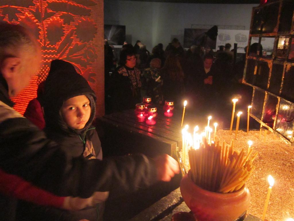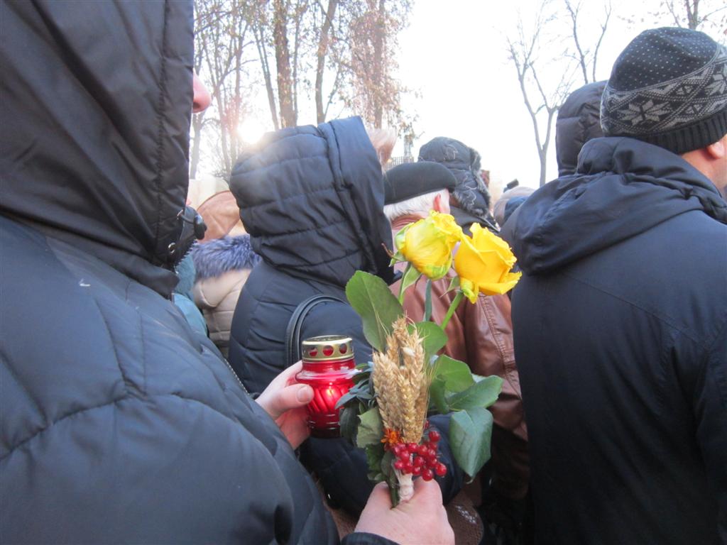 До початку офіційного заходу було ще далеко, журналістів і охорони – багато. Чекали на Президента. Довелося з годину тупцювати на морозі. Уявив, як важко було пережити його напівмертвим від голоду людям. Від цього стало ще гірше. Тим часом з’явилися священики. Кожна конфесія йшла окремо, своєю групою. На неабияке здивування присутніх з’явився навіть предстоятель Української православної церкви Московського патріархату митрополит Онуфрій. Оскільки очолювана ним церква підтримує політику Кремля, а в Росії Голодомор геноцидом українського народу визнавати не збираються, жіночки, що стояли біля мене, почали дискутувати. Вони міркували над тим, чи не отямився часом Онуфрій, чи не піде він на об’єднання українського православ’я. Досперечалися до того, що ледь не проґавили ходу на чолі з Президентом. Після його приходу на територію Меморіалу пустили і тих людей, яких до того притримували. Присутніх одразу суттєво побільшало. Більшість із них були з лампадками, колосками, кетягами калини, хлібом. Тож на молебні за жертвами Голодомору молилися вже тисячі людей.