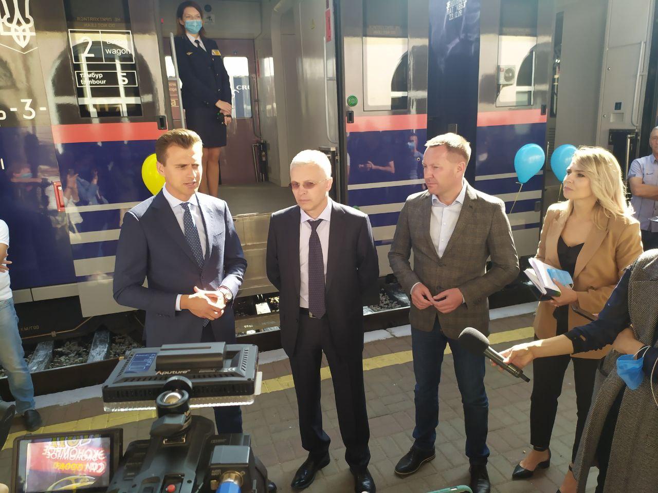 У церемонії запуску потягу взяли участь голова Обласної державної адміністрації Сергій Сергійчук, Народний депутат України Олександр Скічко, кандидат на посаду міського голови міста Черкаси від партії «Слуга народу» Віталій Ільченко.