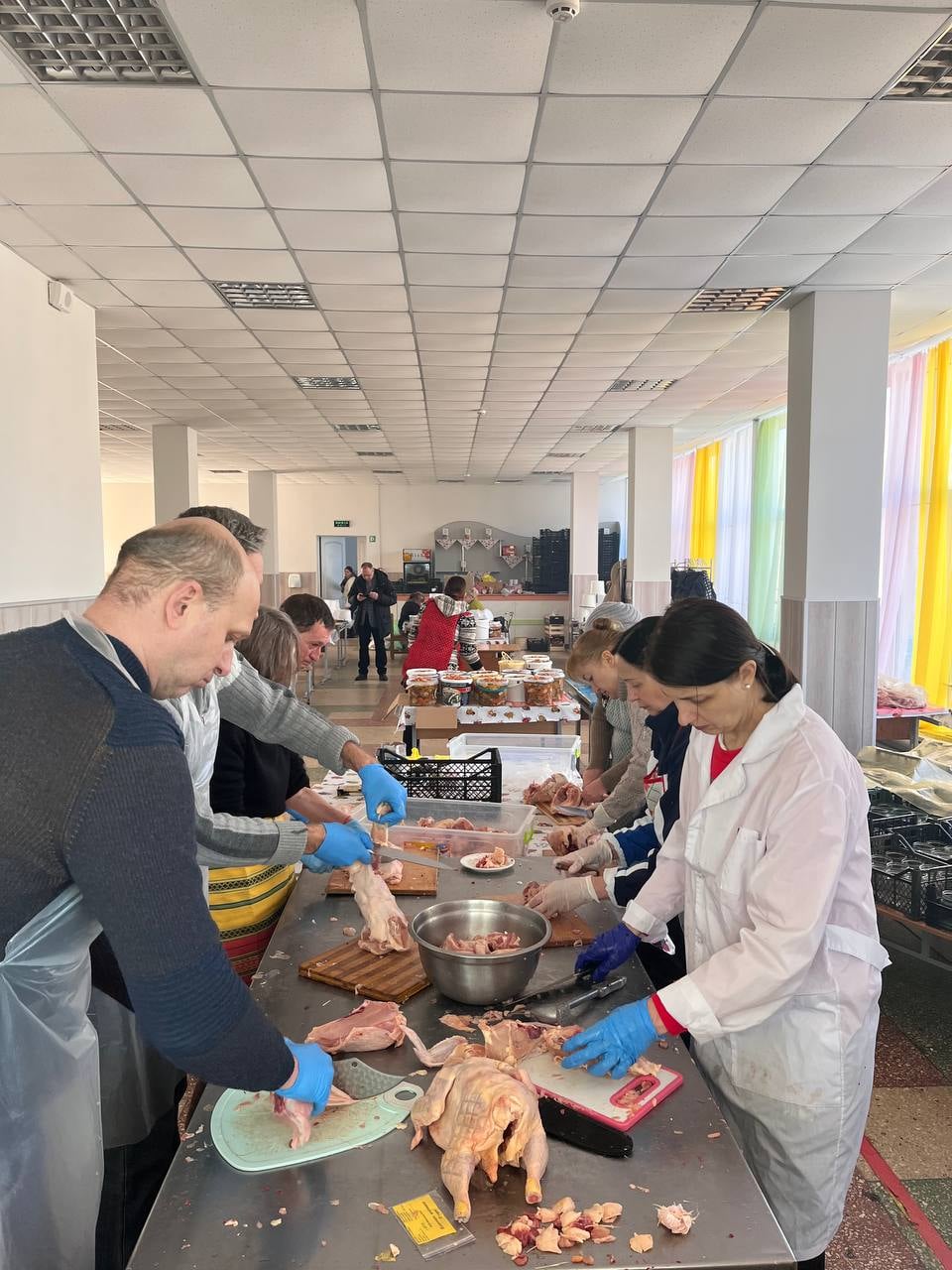 Майже 600 кг курятини та 100 кг м’яса за півтора дня. Саме стільки керівництво, вчителі, технічний персонал та учні Черкаської спеціалізованої школи № 17переробили на тушонку в банках і тушковане м’ясо у відерцях. Уже другу добу у три зміни вони працюють у шкільній їдальні: миють, чистять, ріжуть, готують, розкладають.