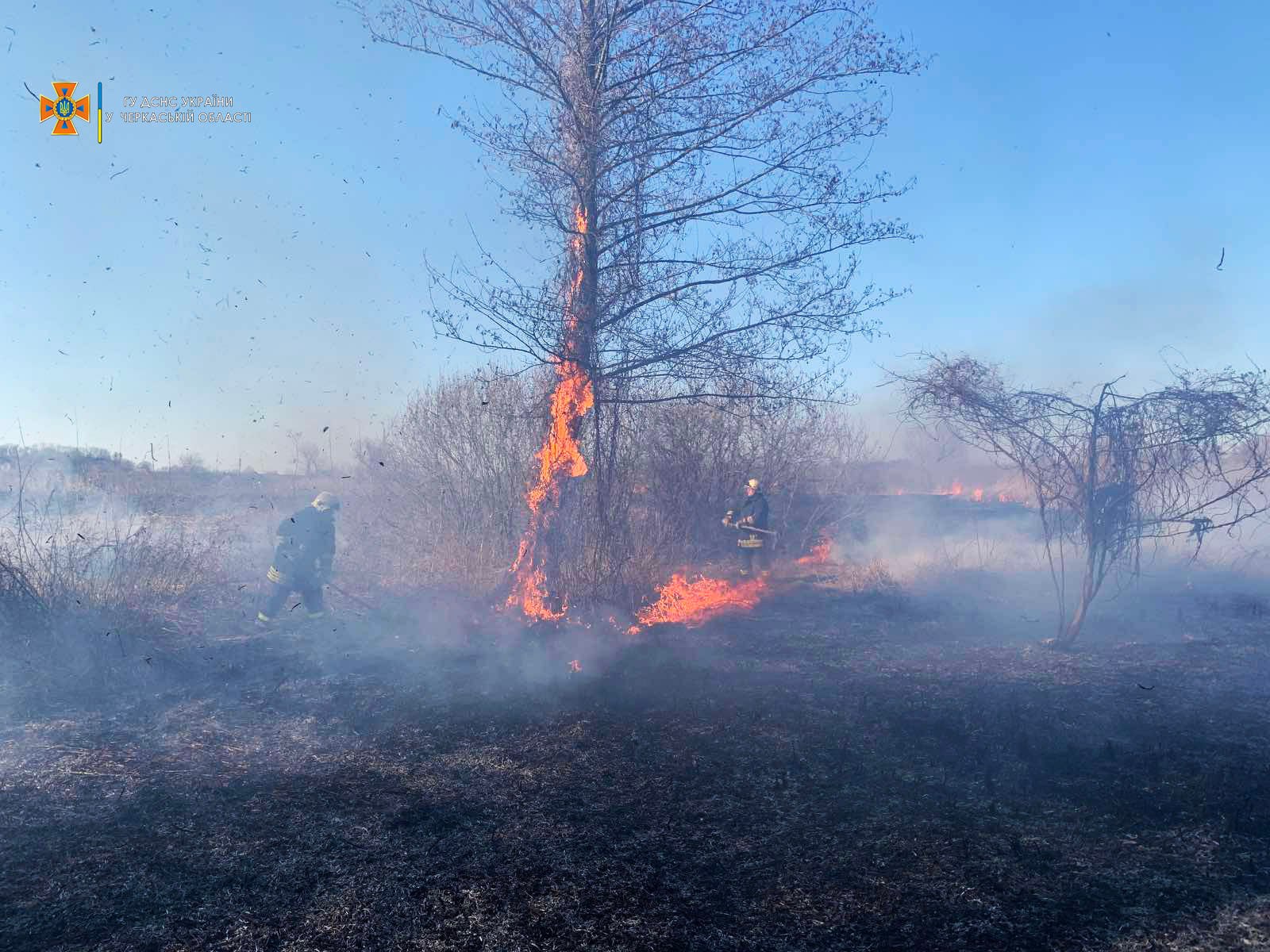 Зокрема, у Звенигородському та Черкаському районах пожежі сухої рослинності розповсюдились на надвірні споруди, завдавши значних збитків господарям.
