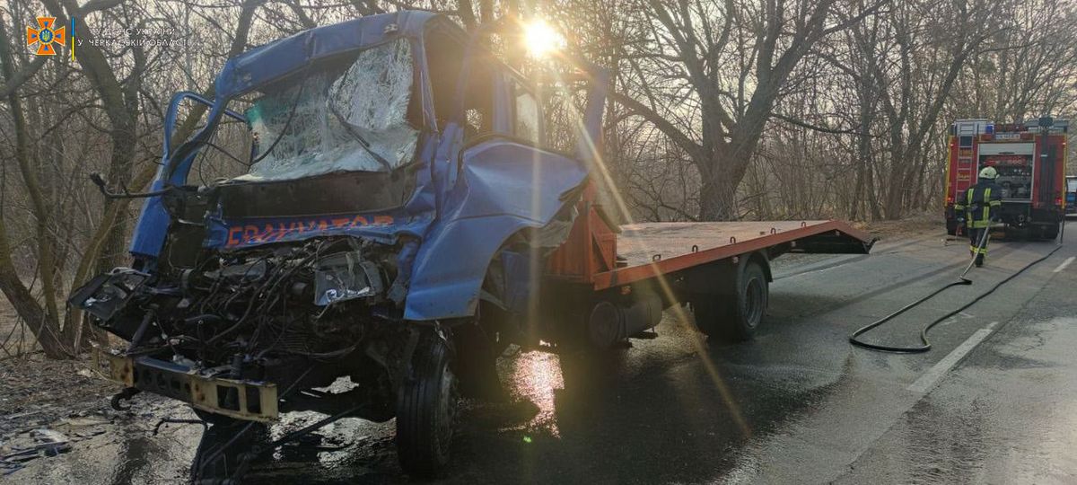 24 березня до Центру управління в надзвичайних ситуаціях надійшло повідомлення про те, що близько 16:30 на автошляху Канів-Грищинці, сталася дорожньо-транспортна пригода за участю вантажного автомобіля DAF та евакуатора ТАТА.