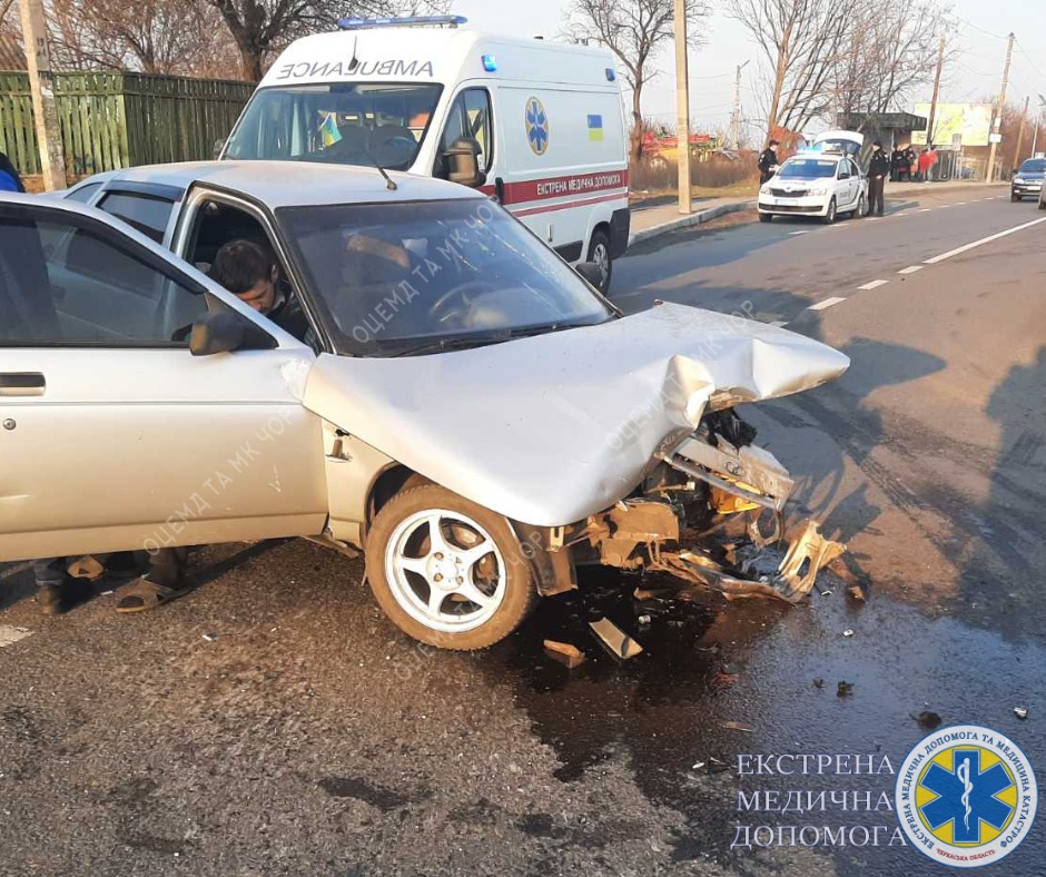 На вулиці Центральній медики оглянули та надали допомогу учасникам аварії. До Смілянської міської лікарні доправили 32-річного чоловіка зі закритою черепно-мозковою травмою, струсом головного мозку та забоєм коліна.