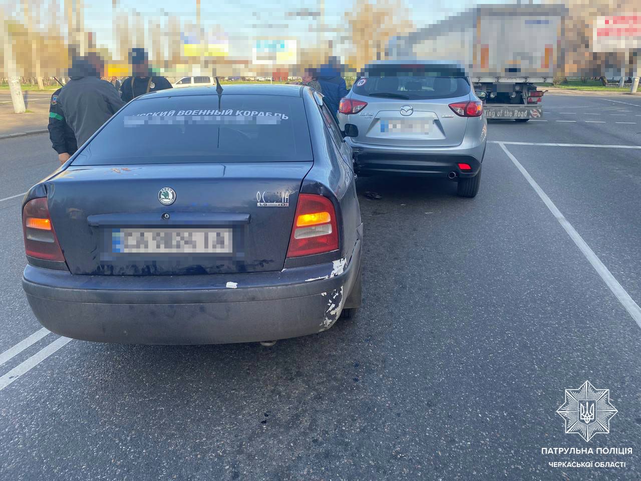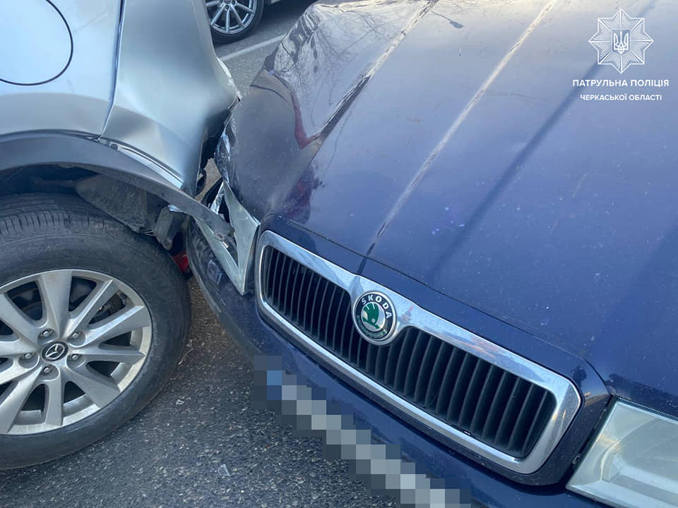 15 квітня у Черкасах на проспекті Хіміків сталася ДТП. 29-річний водій авто Skoda не дотримався безпечної швидкості та дистанції і здійснив зіткнення з автомобілем Mazda, який зупинився на заборонений сигнал світлофора.