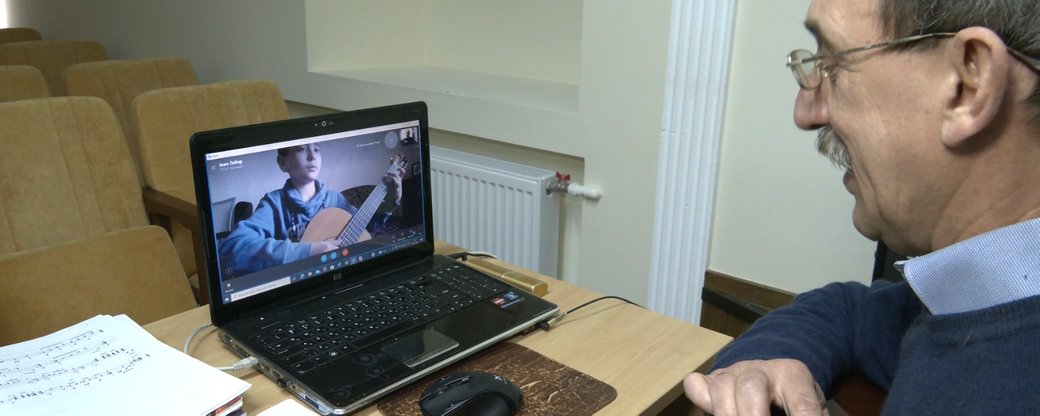 "У нас така специфіка, ми ж музиканти. Краще, коли наживо, на інструменті. Дуже важко з маленькими дітками, бо у великих діток є багаж знань якийсь, і постановка апарата, все це сформовано, з цими дітьми набагато легше. А от з маленькими важко, але доводиться так", – прокоментував учитель.