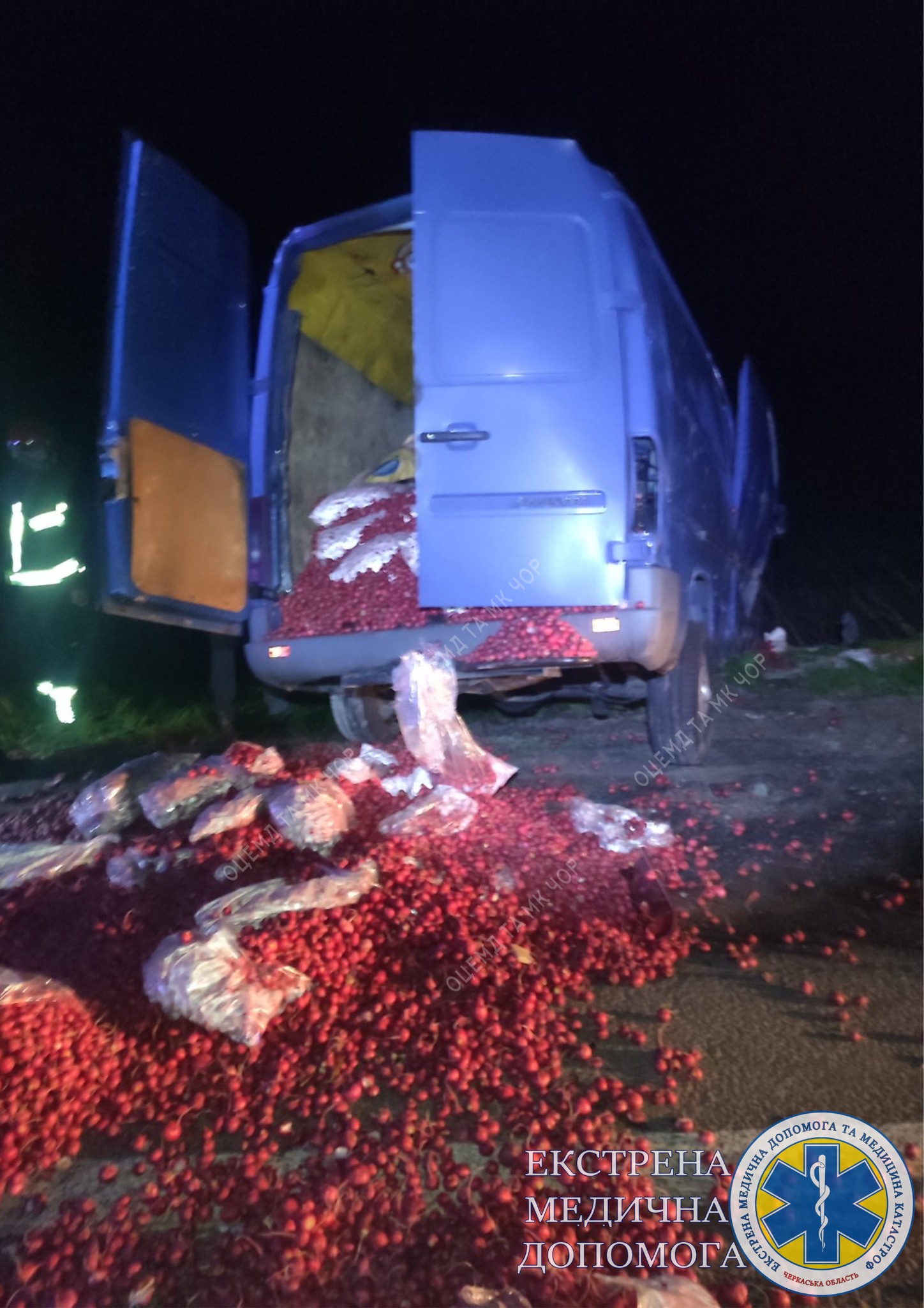 На місці події медики надавали допомогу 28-річному чоловіку. Пацієнта доправили до Третьої черкаської міської лікарні. Попередньо у нього виявили закриту черепно-мозкову травму, закриту травму живота, перелом ребер, закритий перелом гомілковостопного суглобу та, ймовірно, перелом кісток таза.