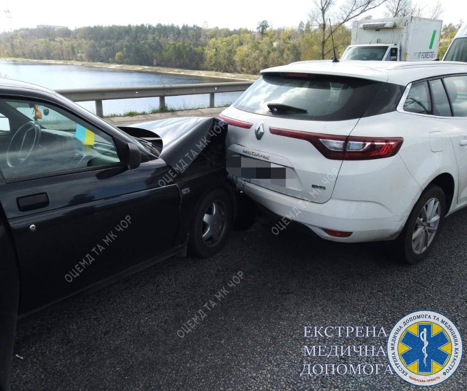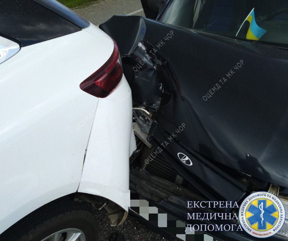 Медики доправили до Третьої черкаської міської лікарні 42-річну пасажирку з авто ВАЗ. Попередньо у неї виявили закриту черепно-мозкову травму, струс головного мозку та рвану рану надбрівної дуги.
