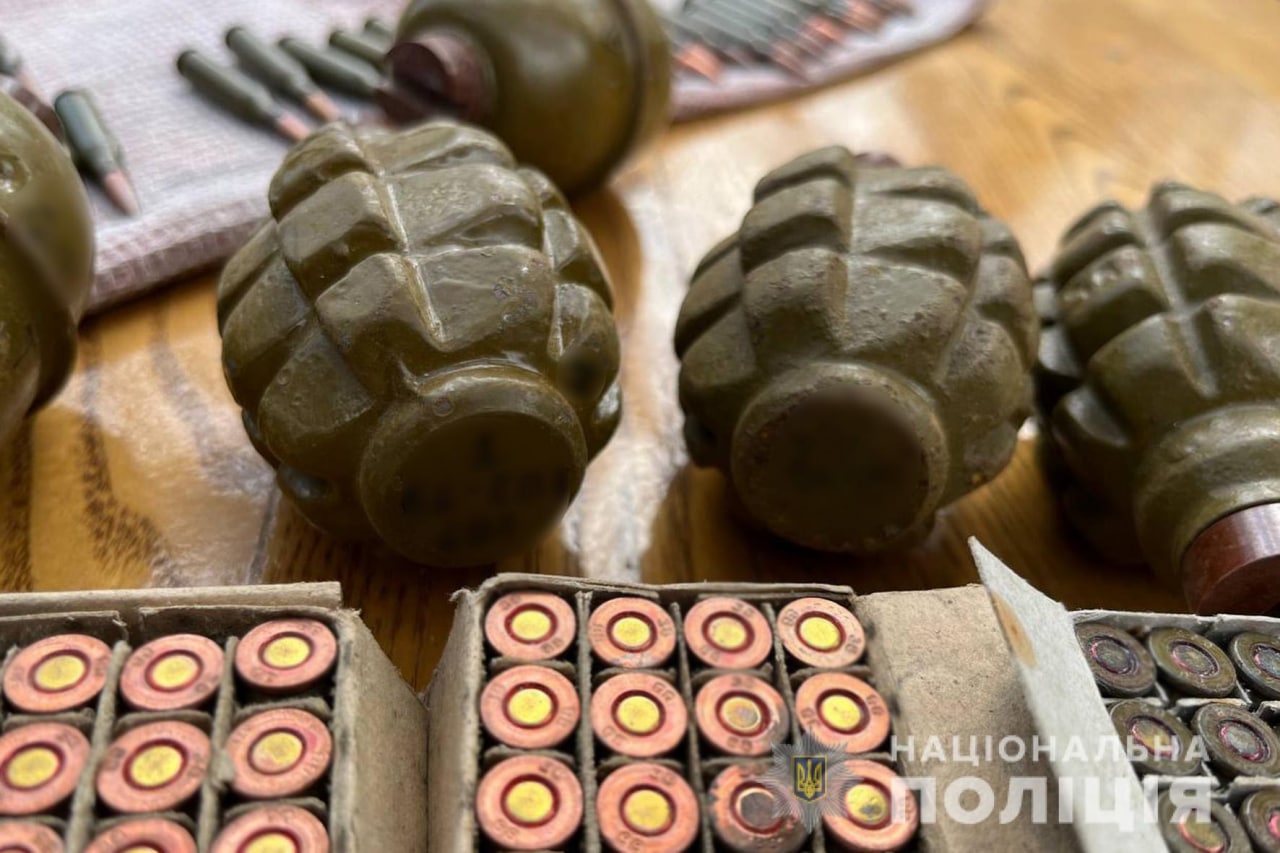 Правоохоронці вилучили заборонені предмети: три гранати Ф-1, чотири гранати РГД-5, шість залпів й понад 250 патронів різного калібру, та відправили на дослідження.