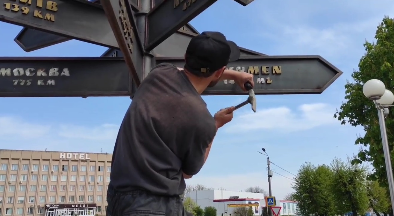 «То ж, Друзі, зараз на вказівнику з'явилося 2 вільних місця. Давайте разом подумаємо, назви яких міст ми можемо туди помістити. Ваші пропозиції пишіть під цим постом, чи мені в приват. P.s. одну москву втопили, другу затерли і зафарбували, залишилося розібратися з основною. Слава Україні!» – пише Олександр Флоренко.