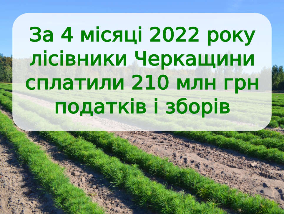Протягом 4-ох місяців 2022 року держлісгоспами Черкаського ОУЛМГ до бюджетів усіх рівнів та Пенсійного фонду сплачено 210 млн грн податків та зборів (на 50% більше у порівнянні з відповідним періодом минулого року). З цих коштів до державного бюджету сплачено 139 млн грн, до місцевих – 42 млн грн.