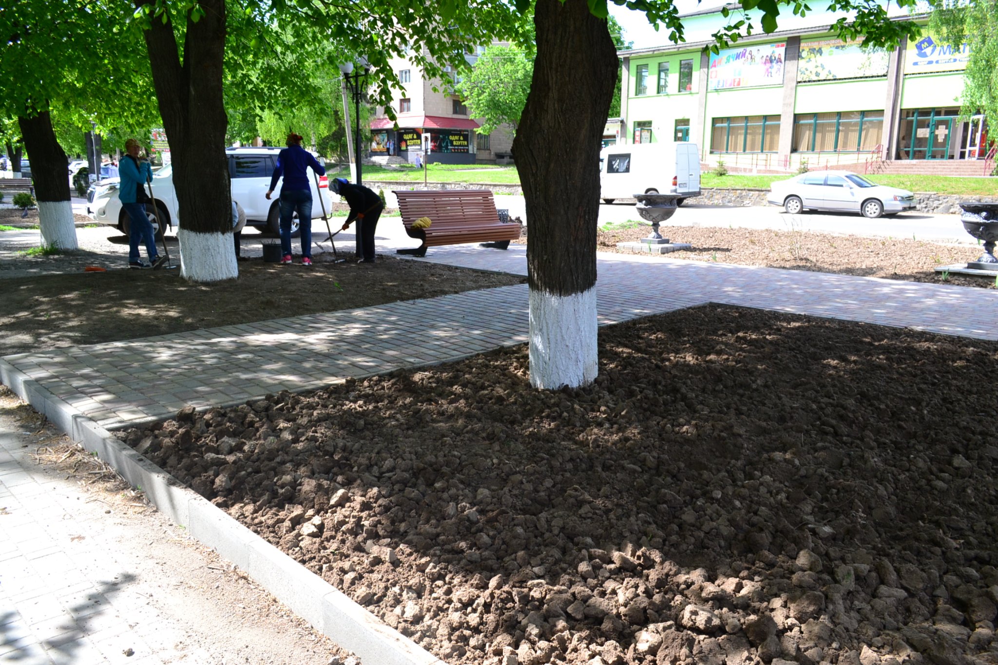 Нині дбайливі руки працівниць з групи по благоустрою обробляють землю для висадки квітів.