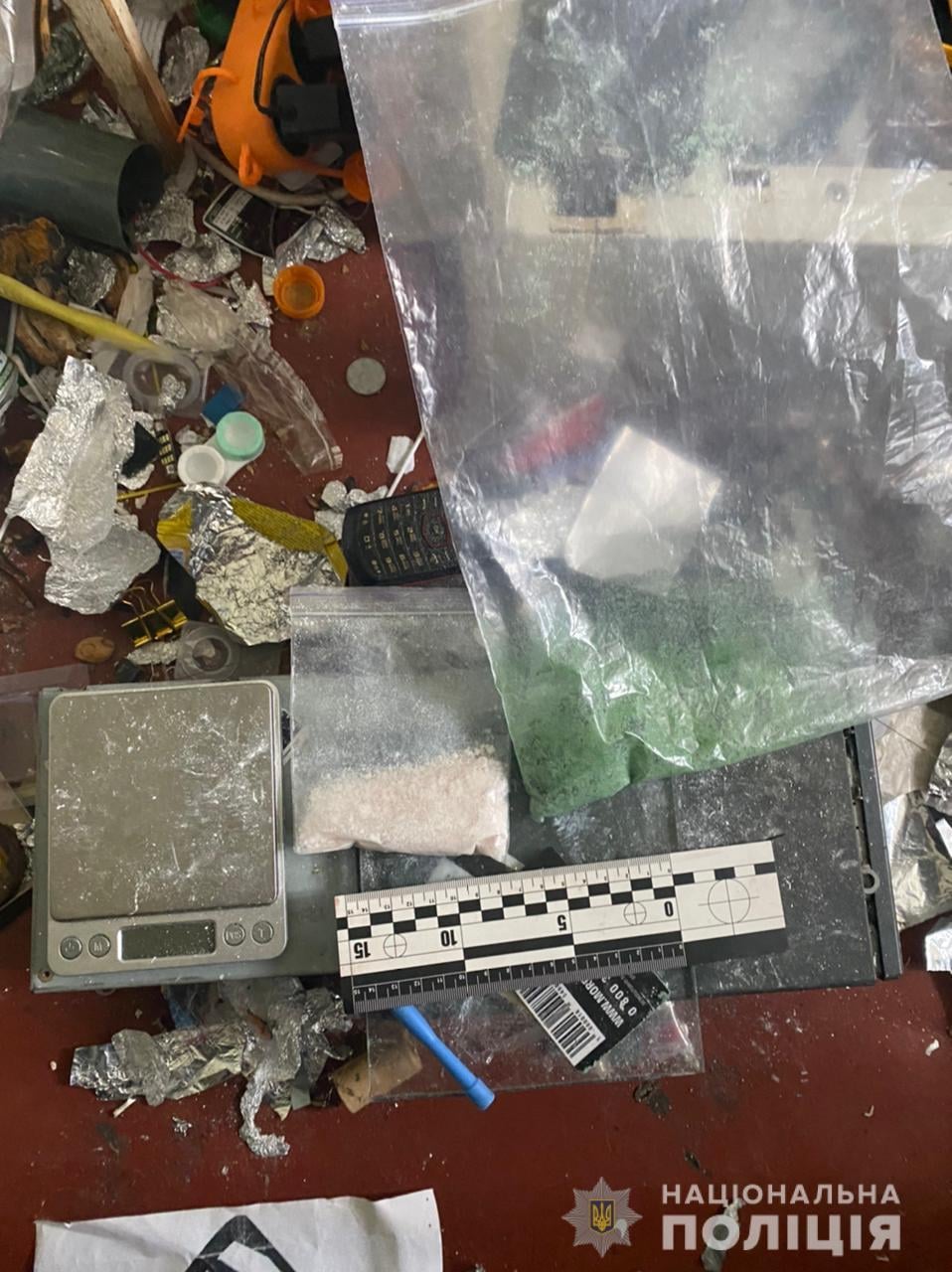 У ході проведення обшуку домоволодіння фігуранта, поліцейські виявили та вилучили 4 згортки та близько 15 грамів порошкоподібної речовини, схожої на амфетамін, та близько 12 грамів порошкоподібної речовини схожої на психотропну сіль.