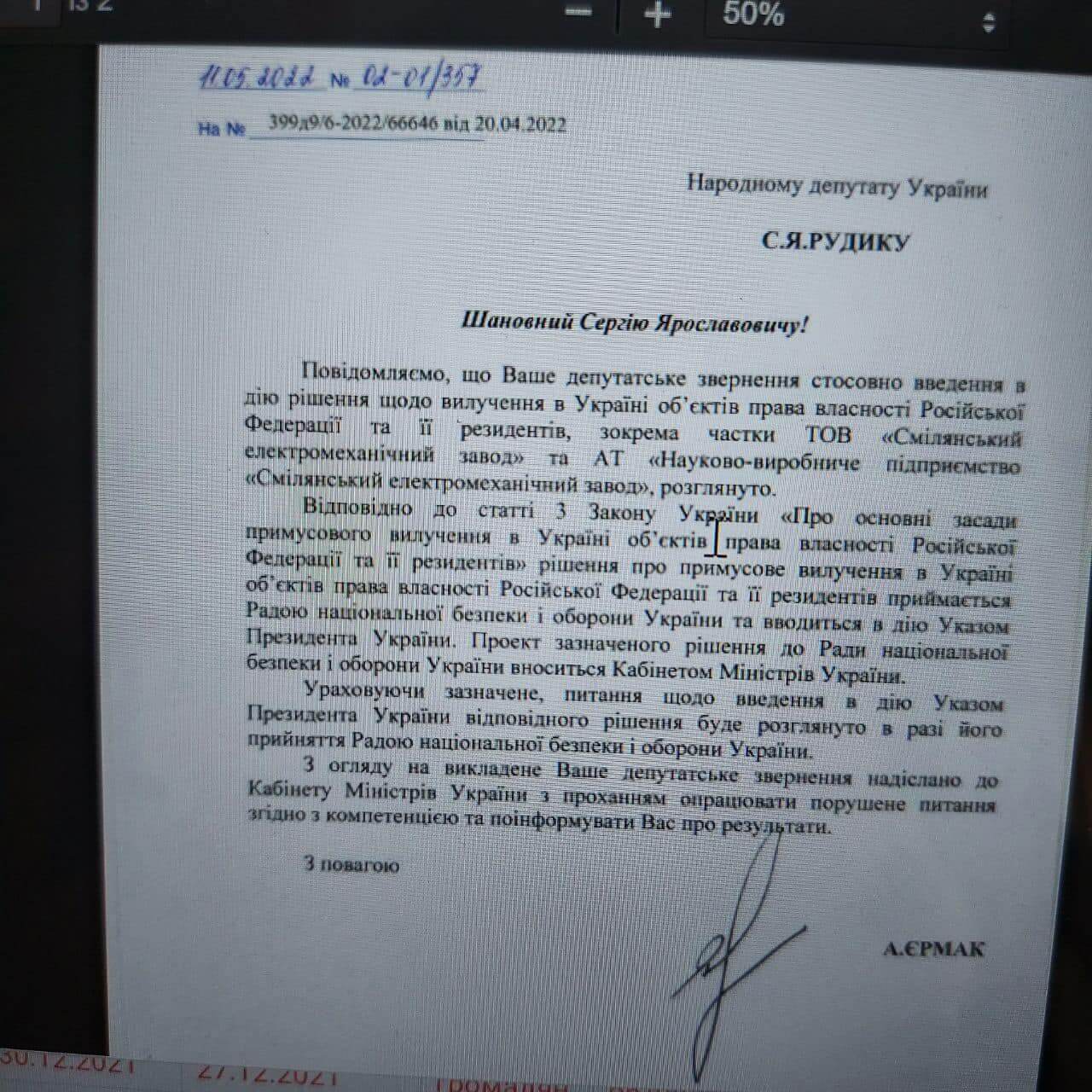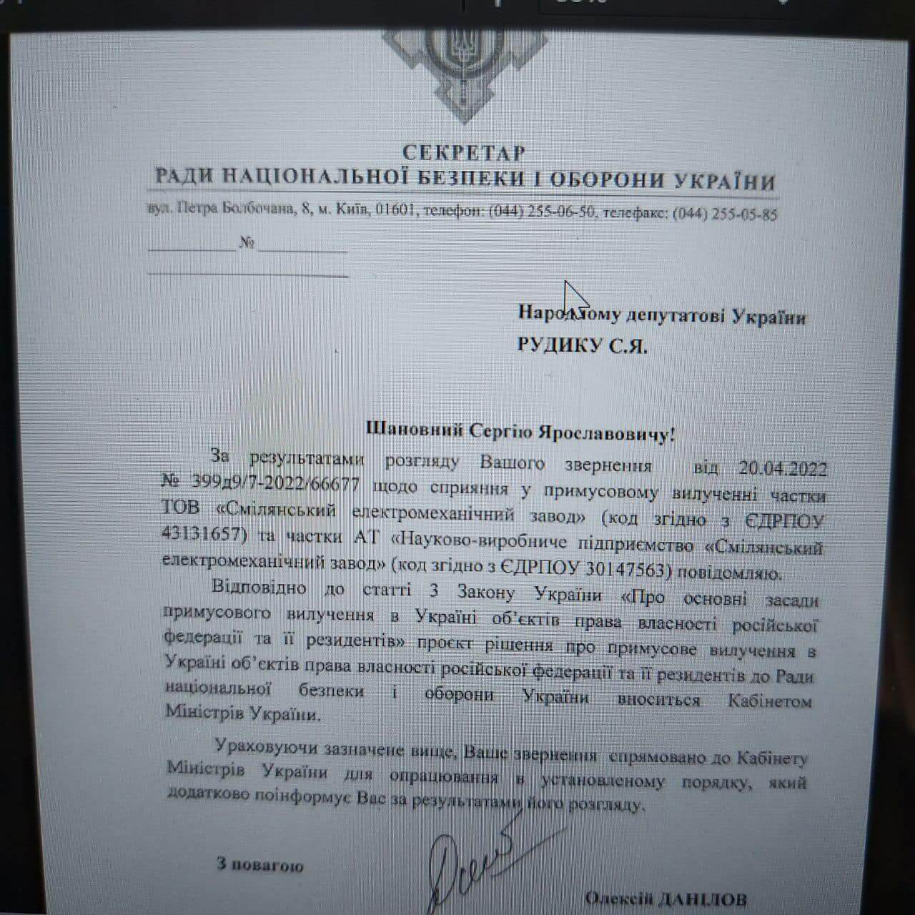 Зараз Кабмін саботує рішення не лише по Смілянському електромеханічному. У переліку російського бізнесу має автоматично фігурувати такий гігант як консорціум «Альфа-Груп». А це – «Альфа-Банк», «КИЇВСТАР», «Моршинський завод мінеральних вод», «Миргородський завод мінеральних вод», «Альфа страхування», «Алюміній України» і ще сотні підприємств, власники яких фінансують війну проти України.