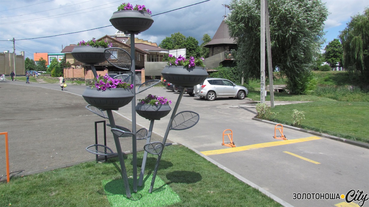 — Вони вже в нас давно чекають на встановлення, та все не доходили руки – війна, проблеми з фінансуванням… А потім вирішили - зима на носі, а люди й не побачать цю красу. Тому вчора зранку забетонували основу, за ніч цемент вистоявся, а сьогодні вже одягли кашпо й висадили квіти. На одному дереві 5 вазонів, у кожному по чотири саджанці ампельної петунії, - розповіла про нову кольористу локацію Олена Олександрівна.