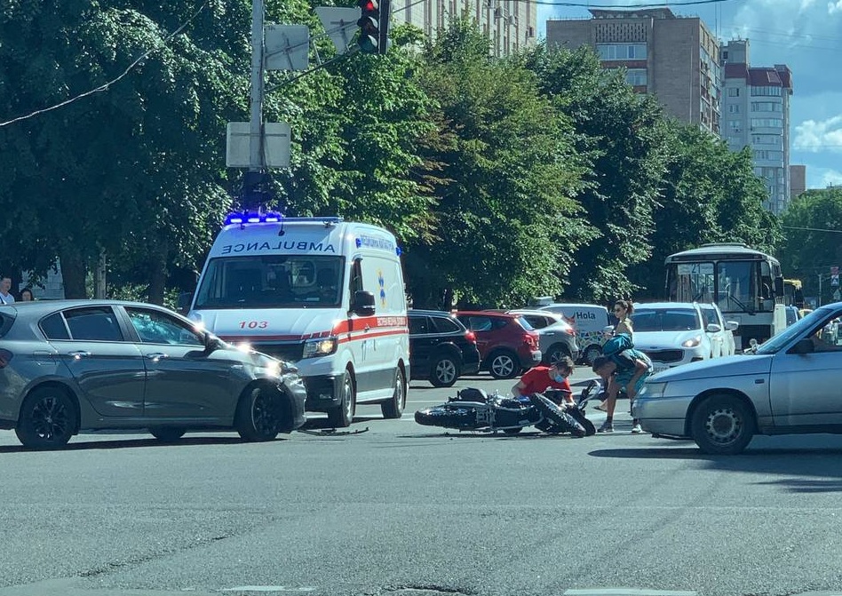 У Черкасах на розі вулиць Хрещатик та Б.Вишневецького сталася ДТП. В результаті аварії постраждав мотоцикліст.