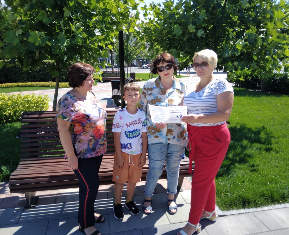 Щоб підвищити обізнаність черкасців з питань протидії торгівлі людьми, після флешмобу фахівці Управління запропонували жителям і гостям міста ознайомитися з брошурами Міжнародної організації праці «Примусова праця: як розпізнати та уникнути».