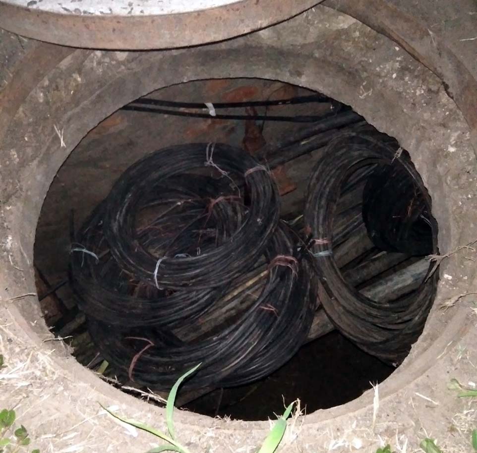 Прибувши на місце, наряд реагування почав обстеження прилеглої території. За кілька хвилин правоохоронці виявили в колодязі зв’язку чоловіка з ручним інструментом та 8 (!) бухтами зрізаних кабелів різної величини. Чоловік намагався заховатися, прикрившись кришкою люка. Горе-крадія затримали «на гарячому».