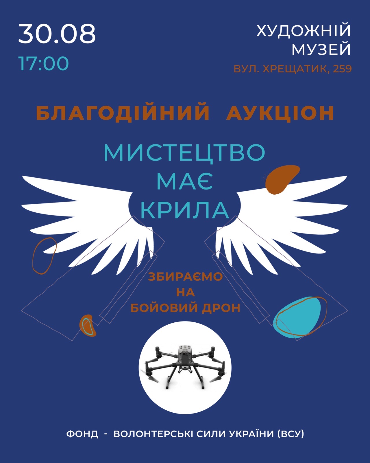 Пройде благодійний мистецький аукціон «Мистецтво має крила» для підтримки військових, що на передовій.