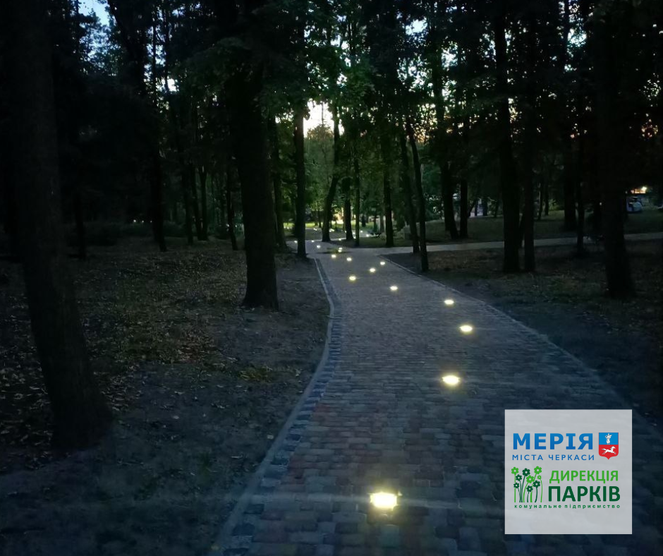 У парку Сосновий бір підсвітили алею Внутрішньо-переміщених осіб. Світильники вмонтували прямо в доріжку поміж тротуарної плитки, тож увечері вона нагадує зоряний шлях.