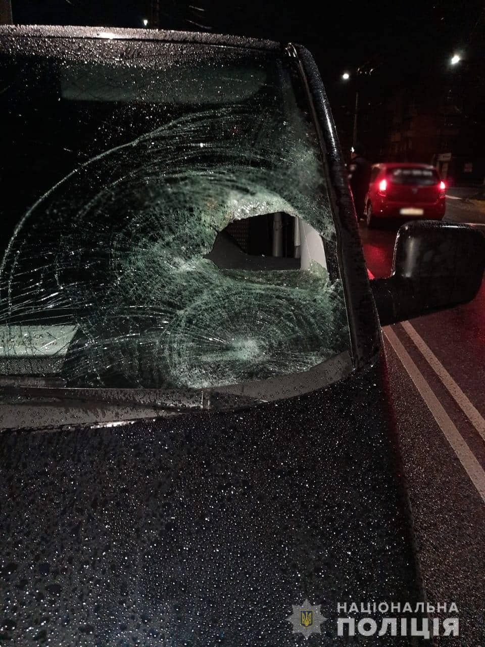 Друга дорожньо-транспортна пригода сталася, близько 20:43 години на вулиці Смілянській. 33-річний водій автомобіля Volkswagen Transporter здійснив наїзд на чоловіка, який переходив дорогу пішохідним переходом на заборонений червоний сигнал світлофора.