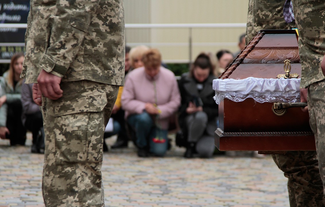 Присутні священики ПЦУ звершили над тілом загиблого героя уставний чин відспівування і виголосили молитовне «Вічну пам'ять».