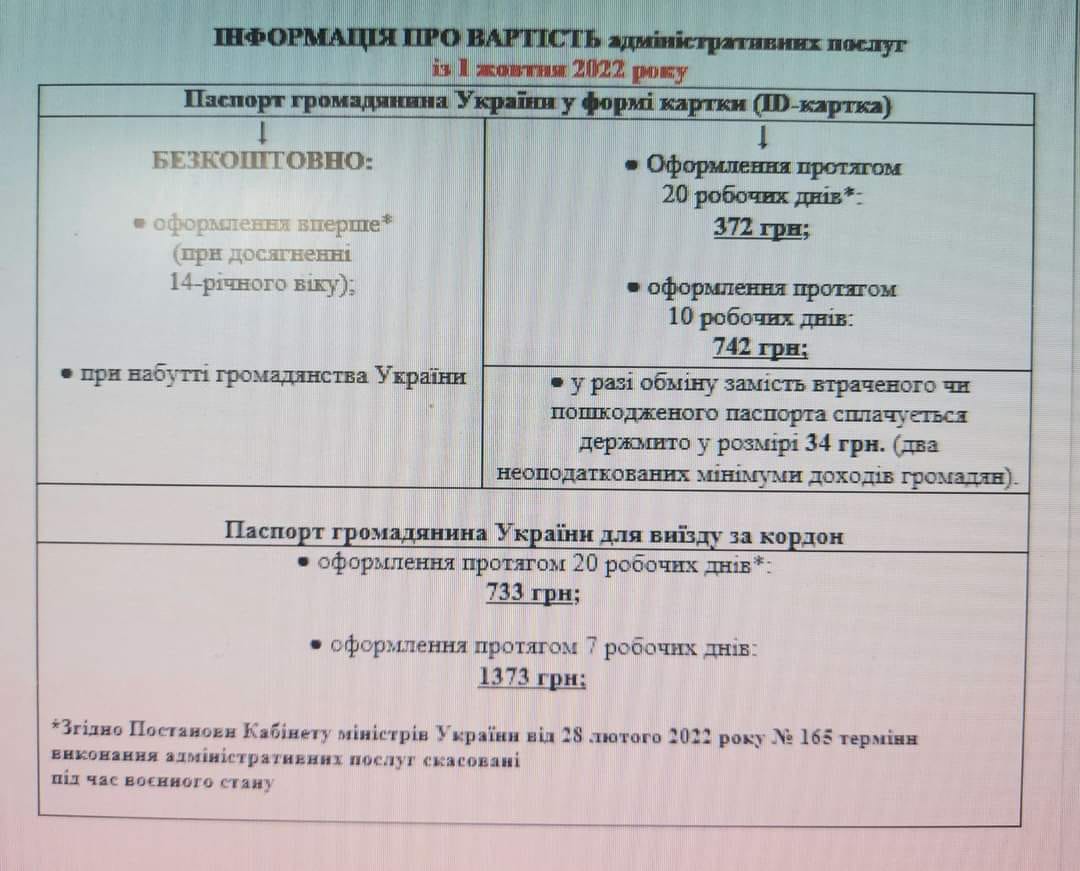 Із 1 жовтня 2022 року в Україні збільшилася вартість адміністративних послуг у сфері міграції для термінового оформлення паспорта громадянина України у формі картки (ID-картка) та паспорта громадянина України для виїзду за кордон.