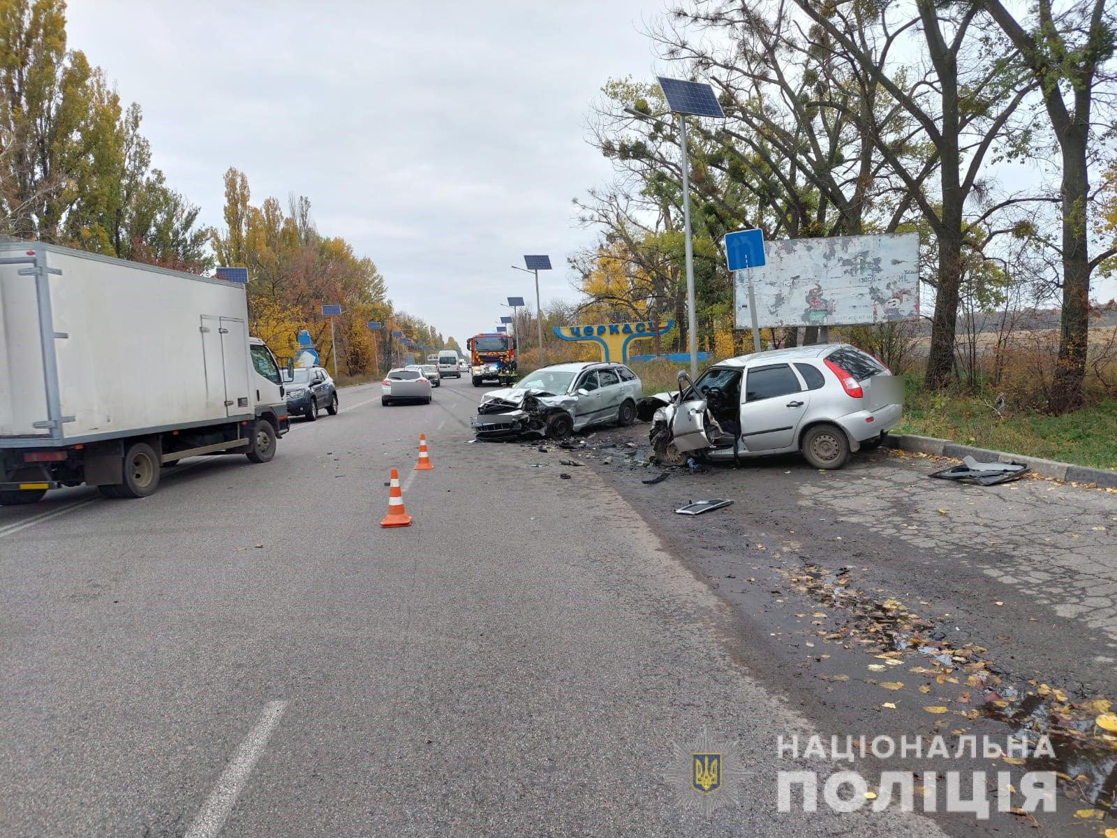 Автопригода сталася 28 жовтня близько 8 години ранку. 44-річний водій автомобіля Skoda Octavia, рухаючись по смілянському шосе в бік міста Сміла, здійснив зіткнення з автомобілем Renault Duster після чого виїхав на зустрічну смугу, де здійснив зіткнення з автомобілем ВАЗ-11193.