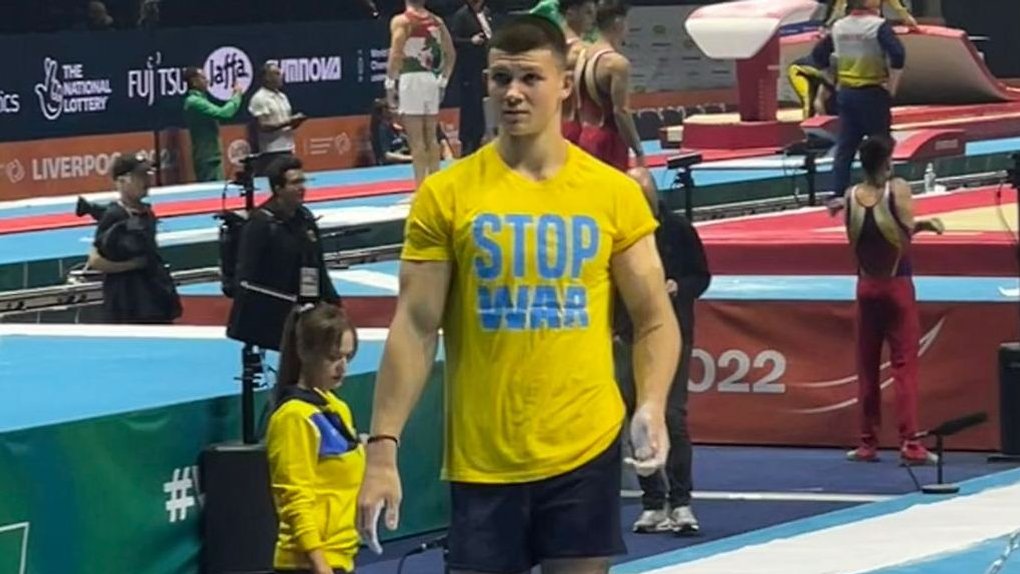 На тренування український гімнаст вийшов у футболці з написом "Зупиніть війну" ("Stop War"), приуроченій повномасштабному вторгненню РФ, яке триває понад вісім місяців. За що ледь не отримав покарання від Міжнародної федерації гімнастики.