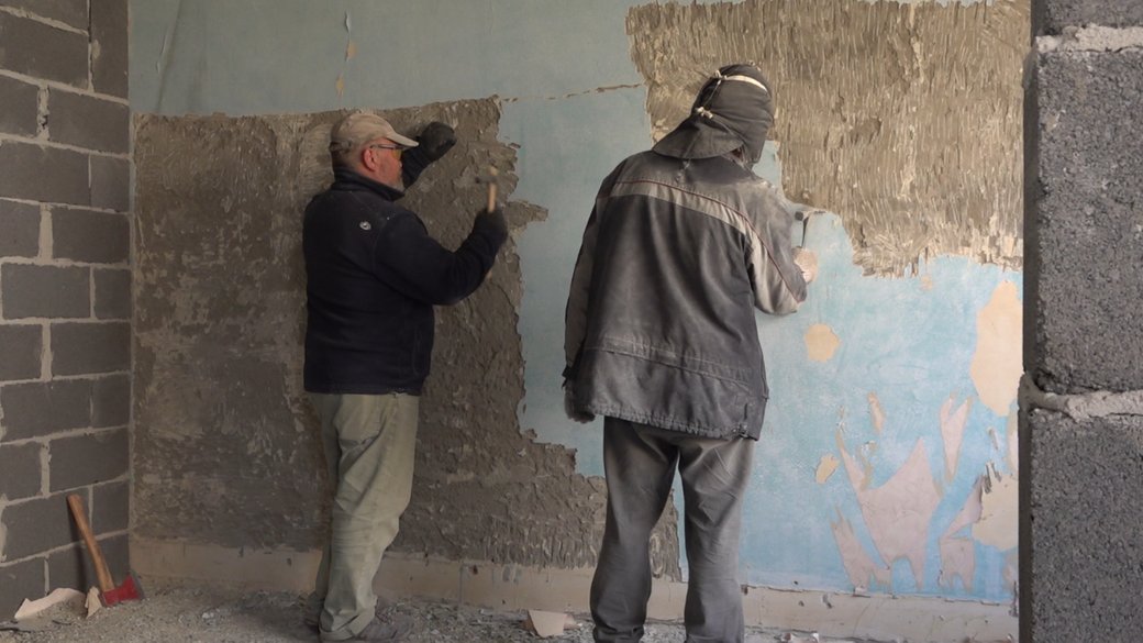 "Часом оббивається добре, а де важче, то на це йде день. Інші робітники будуть штукатурити, шпаклювати, облагороджувати кімнати", — пояснив працівник.