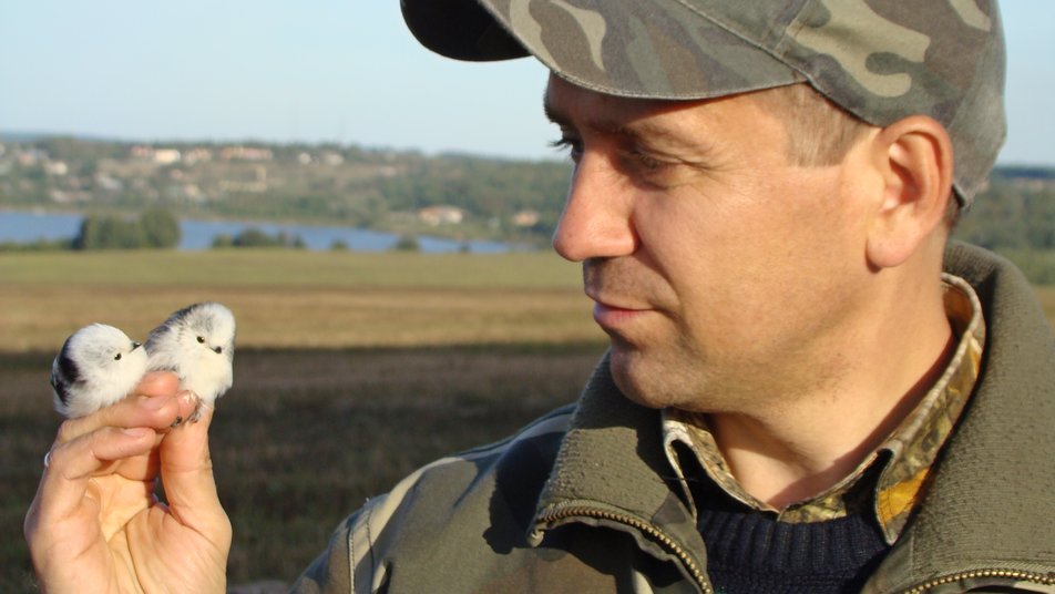 Орнітолог Максим Гаврилюк тримає довгохвостих синиць. Фото Сергій Домашевский