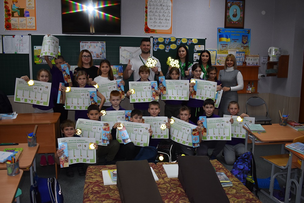 Остання така зустріч відбулася з четвертокласниками КЗ «Черкаська санаторна школа Черкаської обласної ради», де працівники сервісного центру нагадали учням головні правила дорожнього руху та подарували світловідбивні елементи на одяг, щоб в темну пору доби вони були більш помітними на проїжджій частині. Адже саме в осінньо-зимовий період, коли світловий день зменшується й швидко темніє, пішоходи частіше наражаються на небезпеку. А в умовах відключення електроенергії, коли вулиці майже не освітлюються й часто не працюють світлофори, звична дорога додому стає справжньою смугою перешкод.
