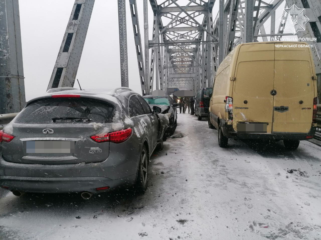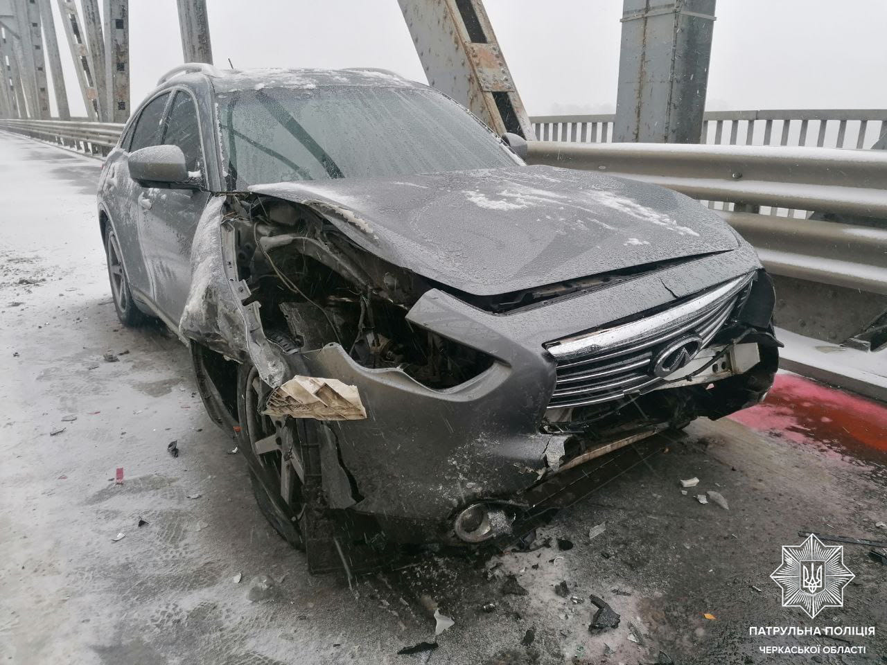 Сьогодні екіпаж патрульних отримав виклик про ДТП на автодорозі Н-16 Золотоноша — Черкаси — Сміла — Умань за участі автомобілів Infinity, Toyota, Volkswagen, Mercedes-Benz.