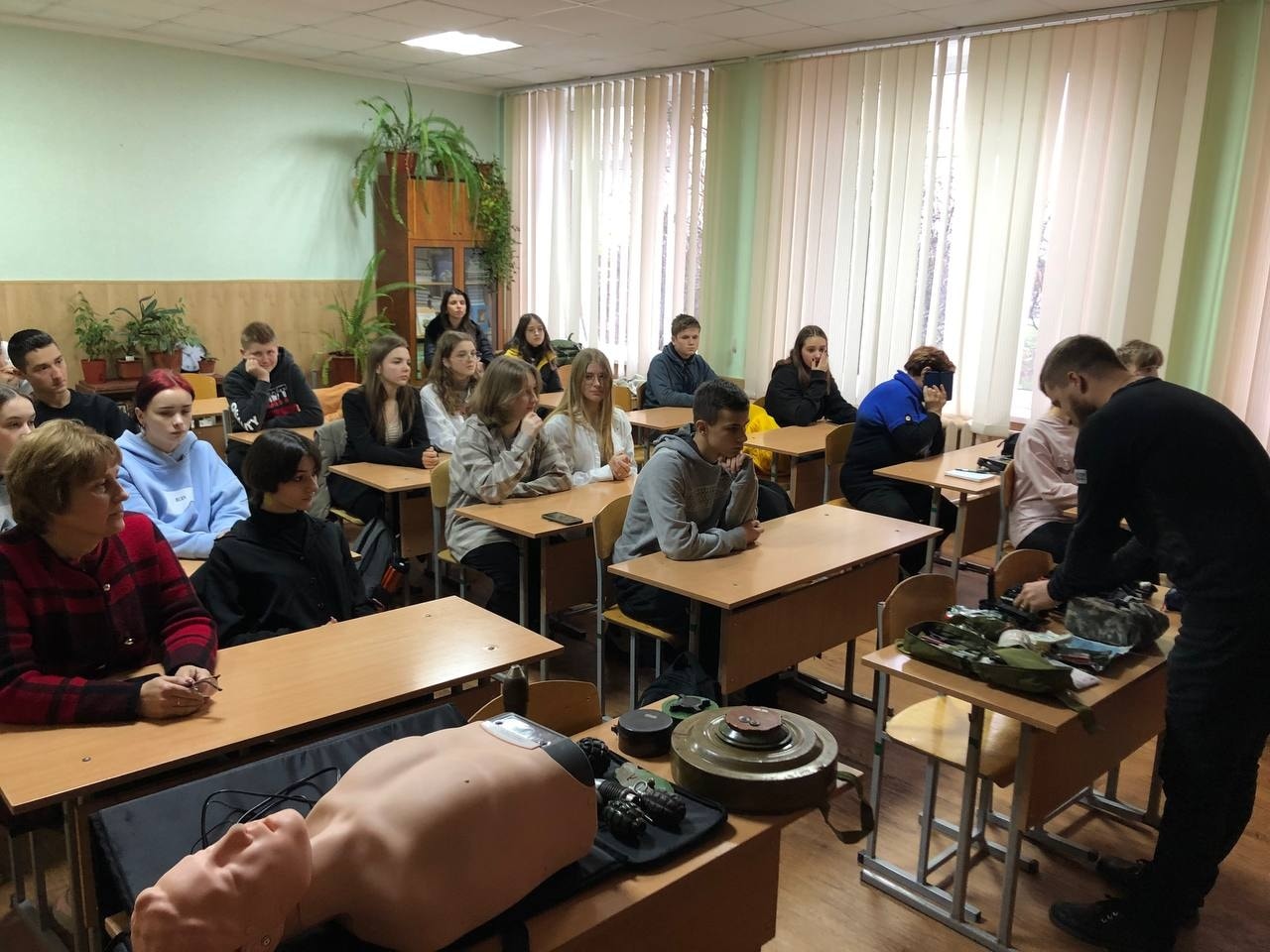 Другий тиждень триває проєкт відділу молоді та національно-патріотичного виховання, на якому школярів ознайомлюють зі складом військової аптечки та особливостями її застосування, навчають, як правильно евакуювати пораненого, робити серцево-легеневу реанімацію тощо.