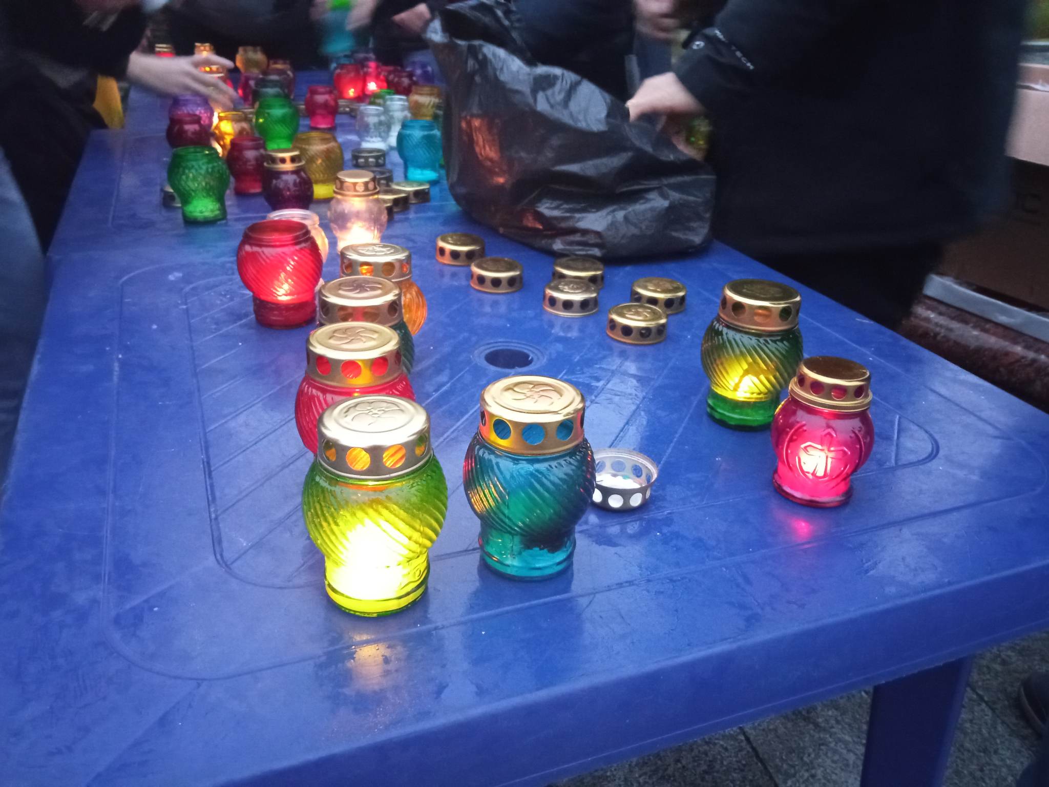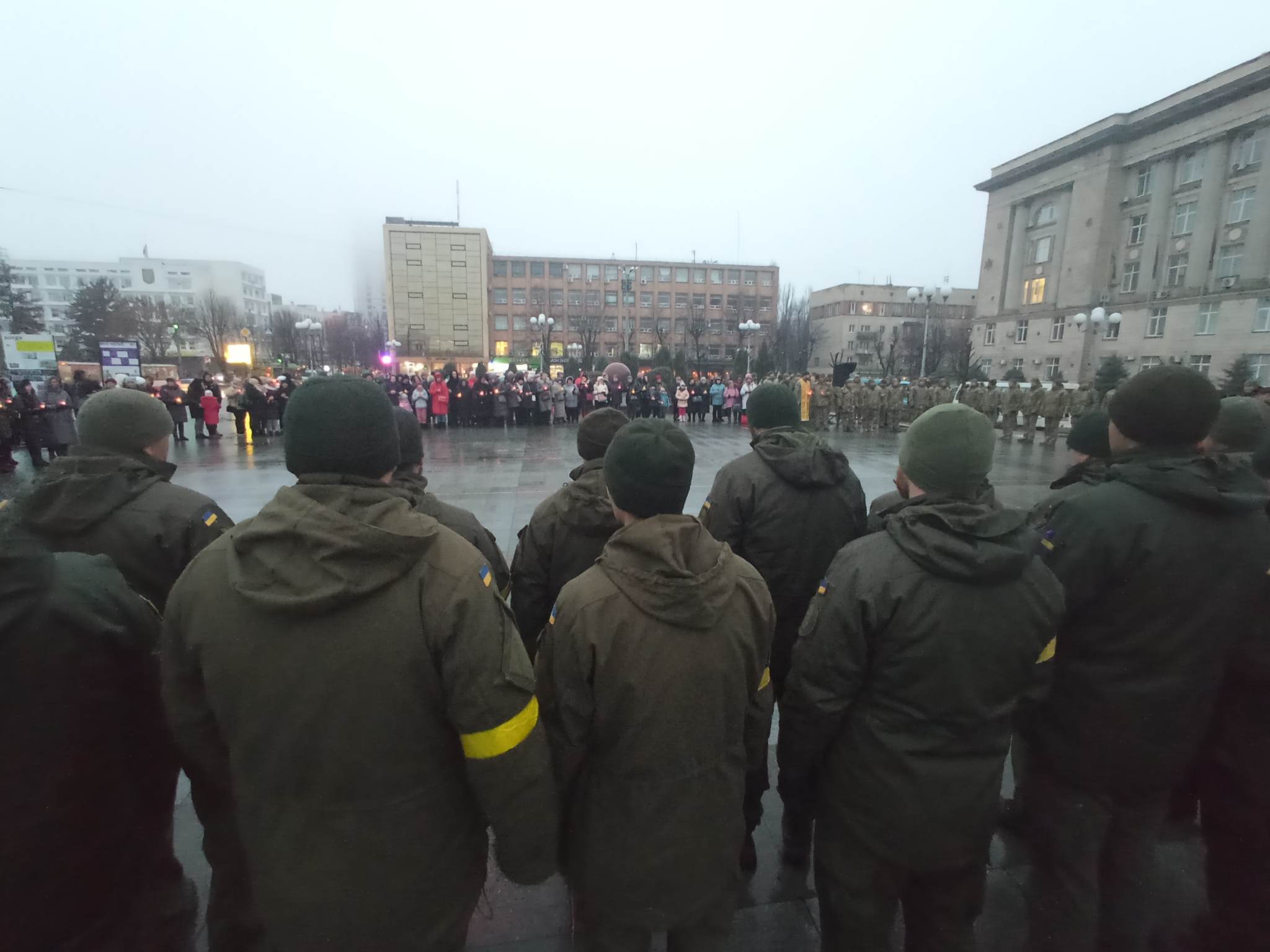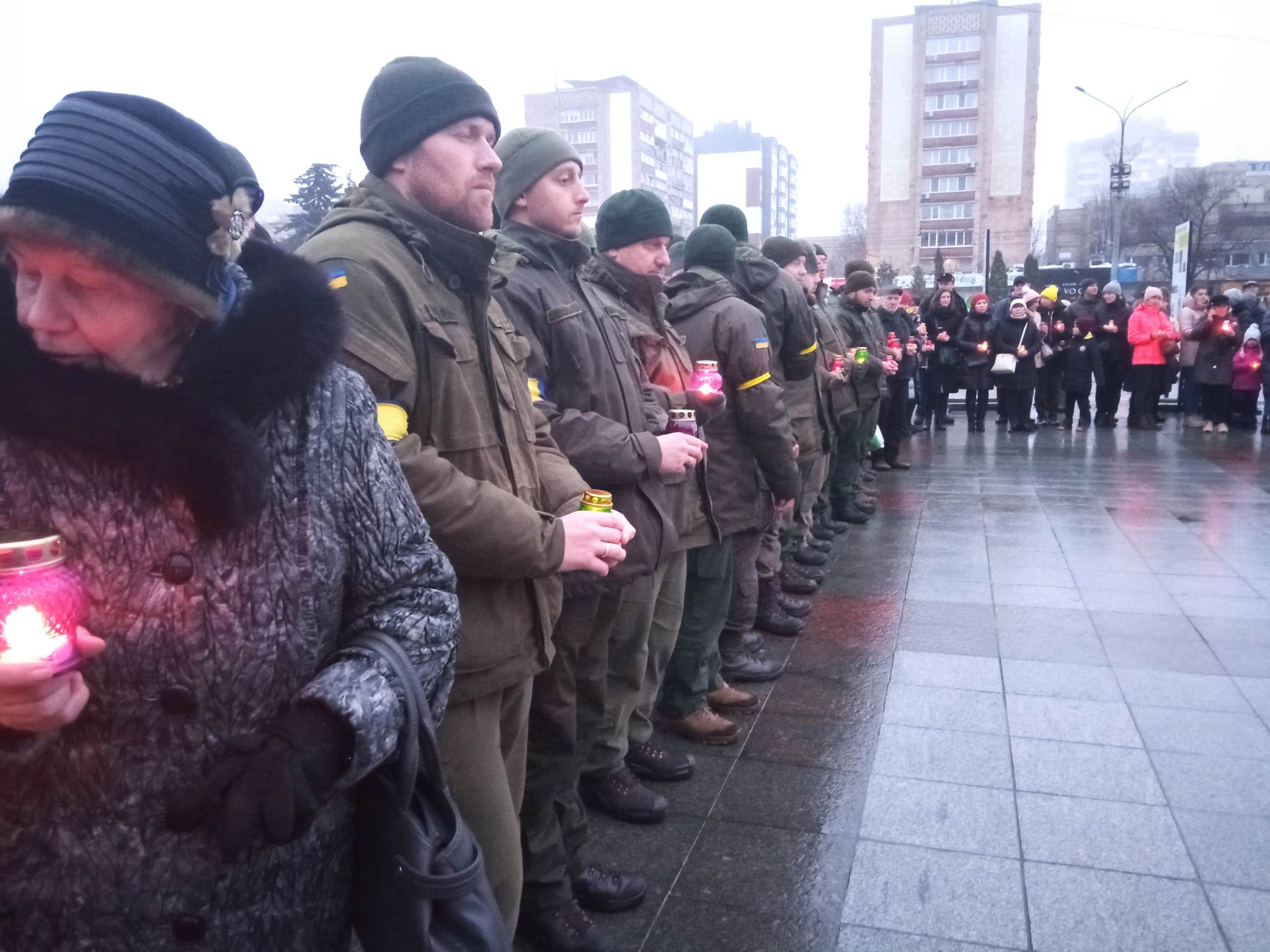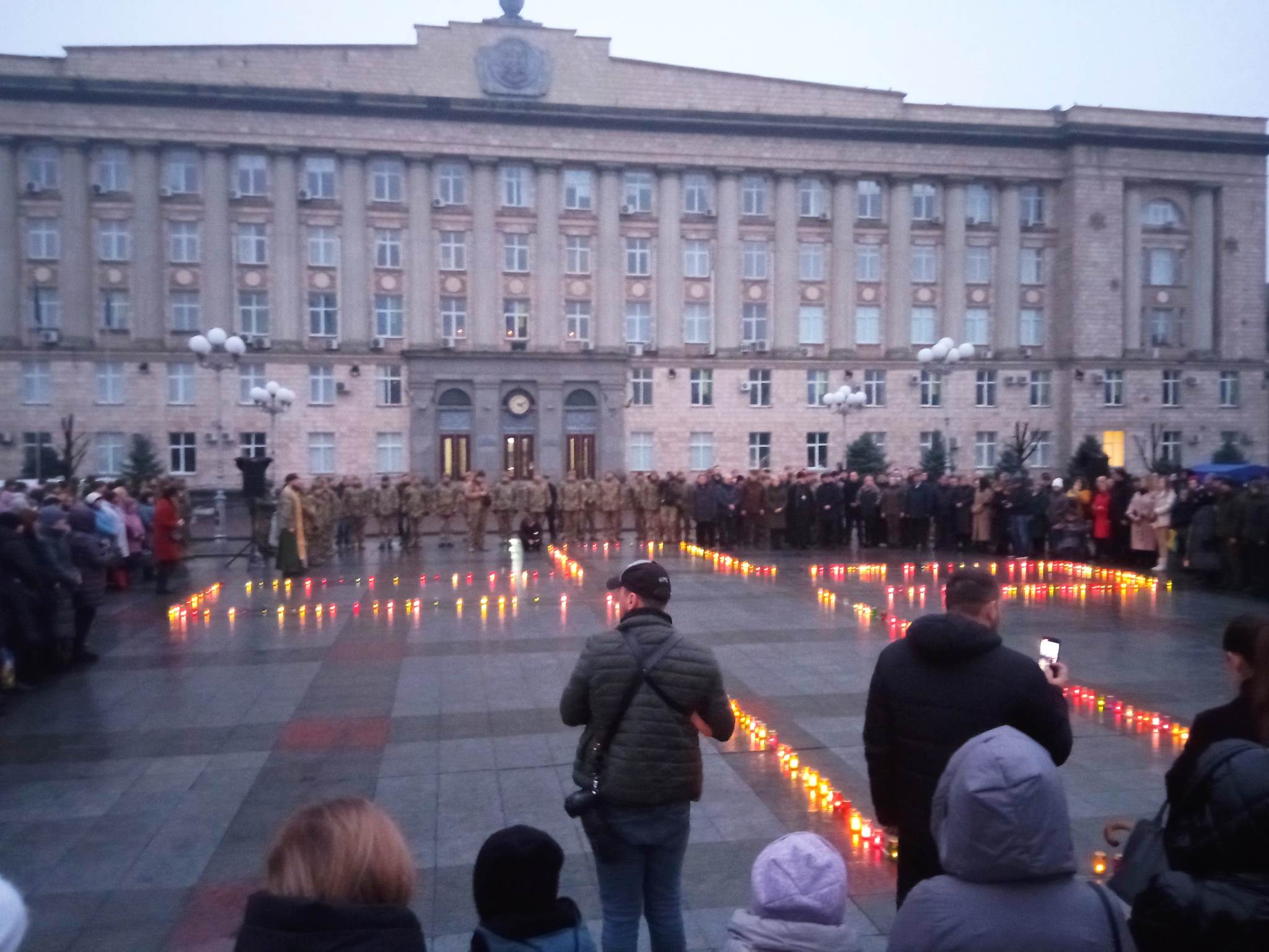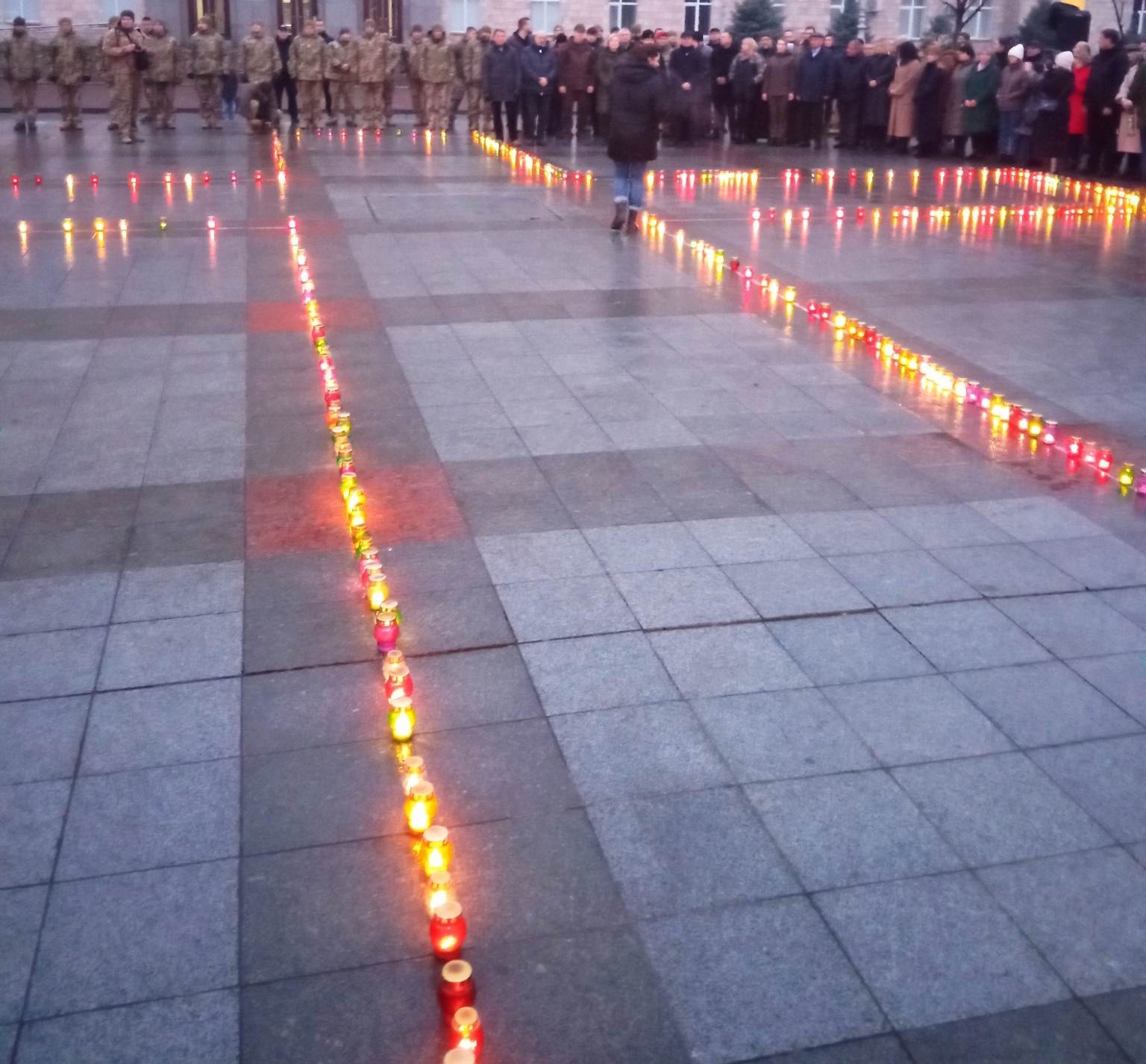 На Соборній площі у Черкасах люди запалили свічки пам’яті, виклавши ними хреста.