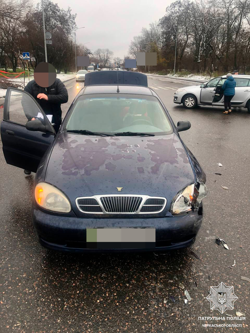 Прибувши на місце події та поспілкувавшись із водіями, поліцейські встановили, що водій автомобіля Honda, виїхав на перехрестя з вулицею Благовісною на заборонений червоний сигнал світлофора. В наслідок чого, скоїв зіткнення з авто Daewoo Lanos, який рухався на зелений сигнал світлофора.