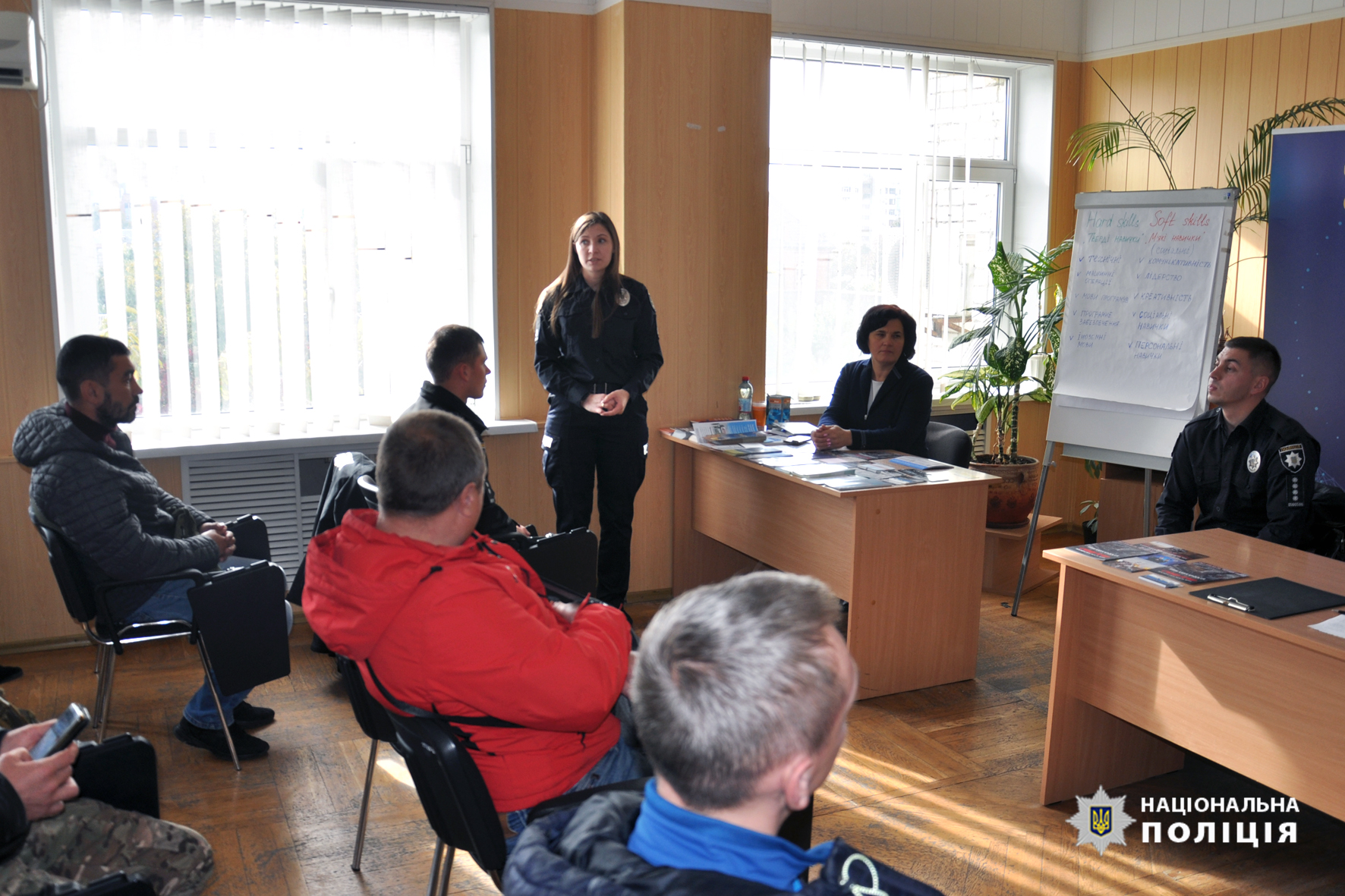 Заступник начальника управління кадрового забезпечення Головного управління Національної поліції в Черкаській області Олексій Бущук та директор Черкаської філії Черкаського обласного центру зайнятості Оксана Щербак провели зустріч з черкащанами, які перебувають на обліку у центрі зайнятості.
