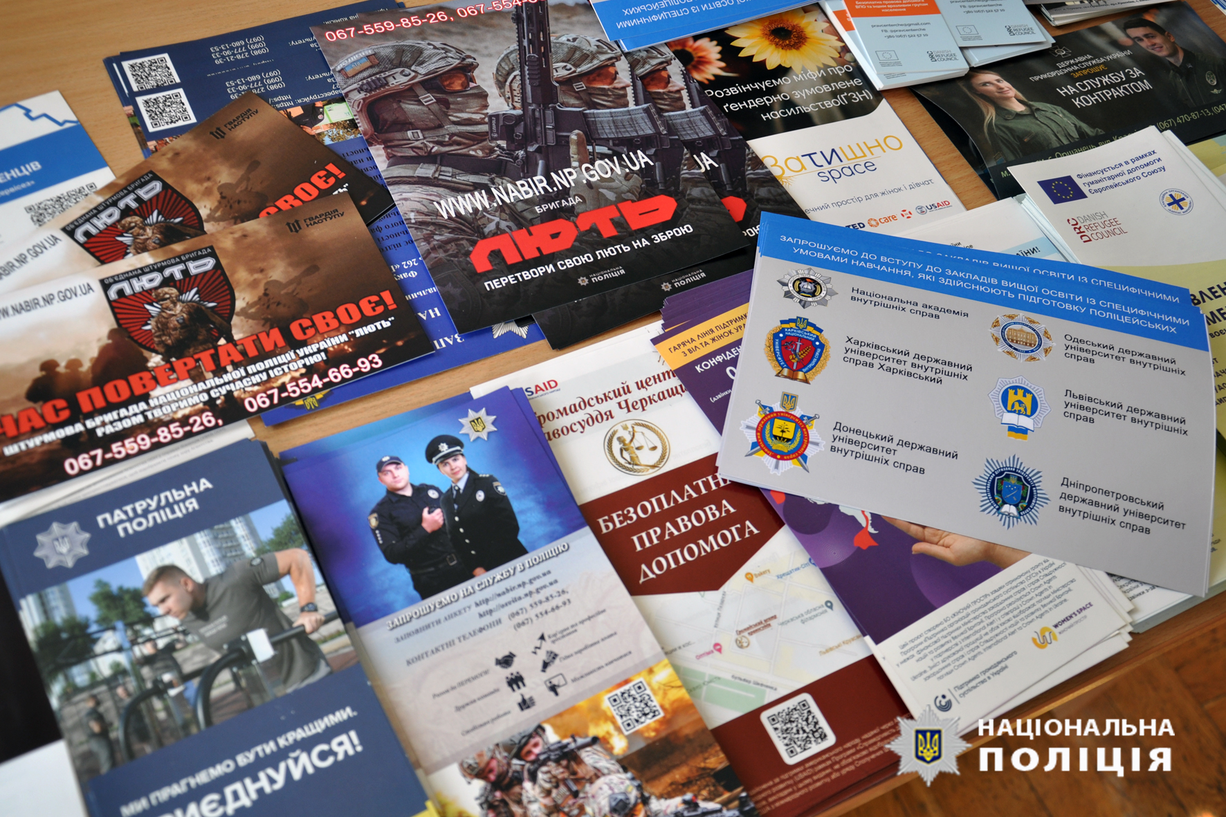 Під час зустрічі обговорили умови та порядок проведення конкурсу на службу в поліції Черкащини. Детально розповіли про специфіку роботи слідчого та поліцейського батальйону поліції особливого призначення.