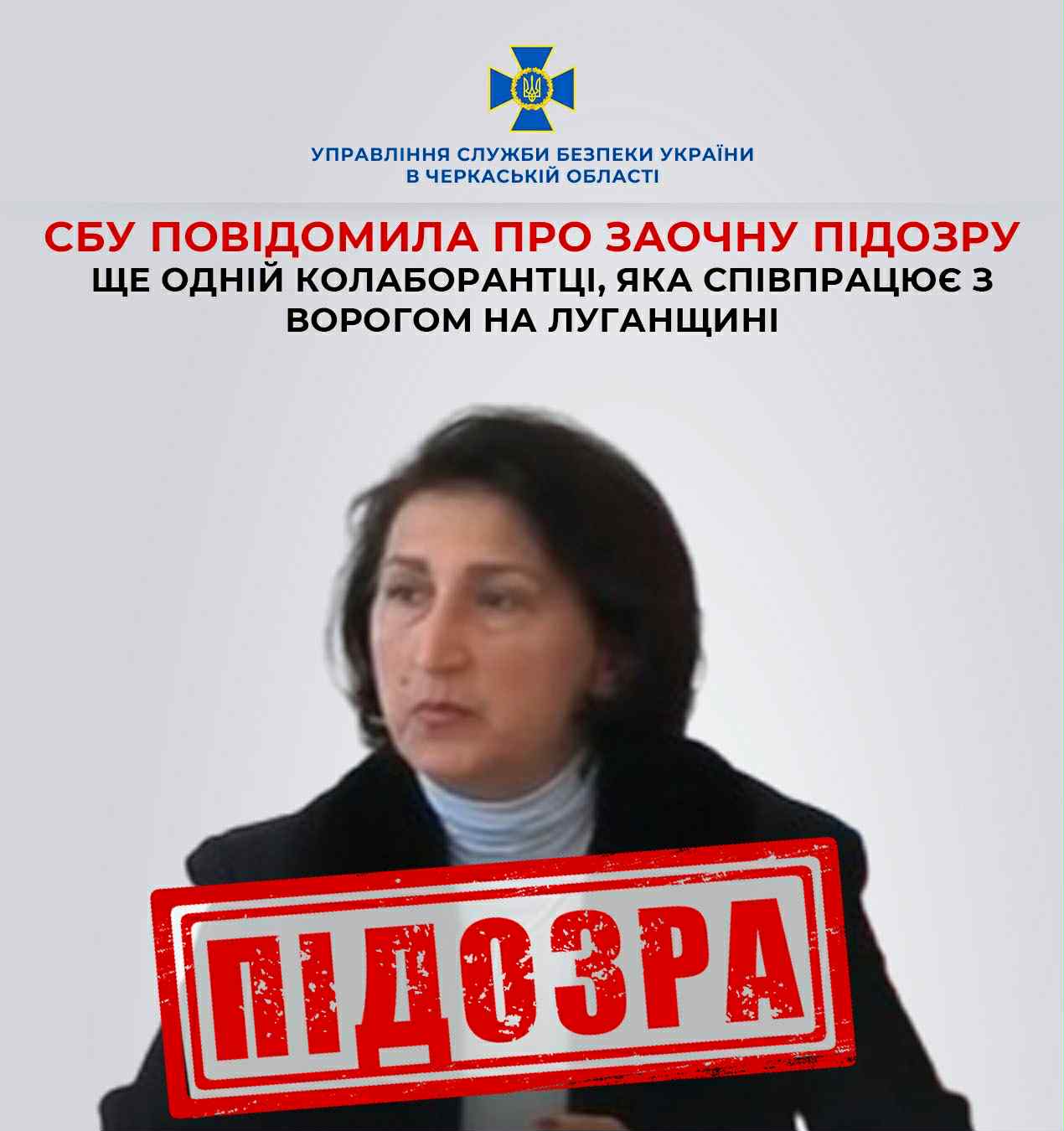 Нині зрадниця переховується від правосуддя на тимчасово окупованій території України. Служба безпеки наголошує на невідворотності покарання за злочини проти нашої держави. Розслідування проводили слідчі СБУ в Черкаській області за процесуального керівництва обласної прокуратури.