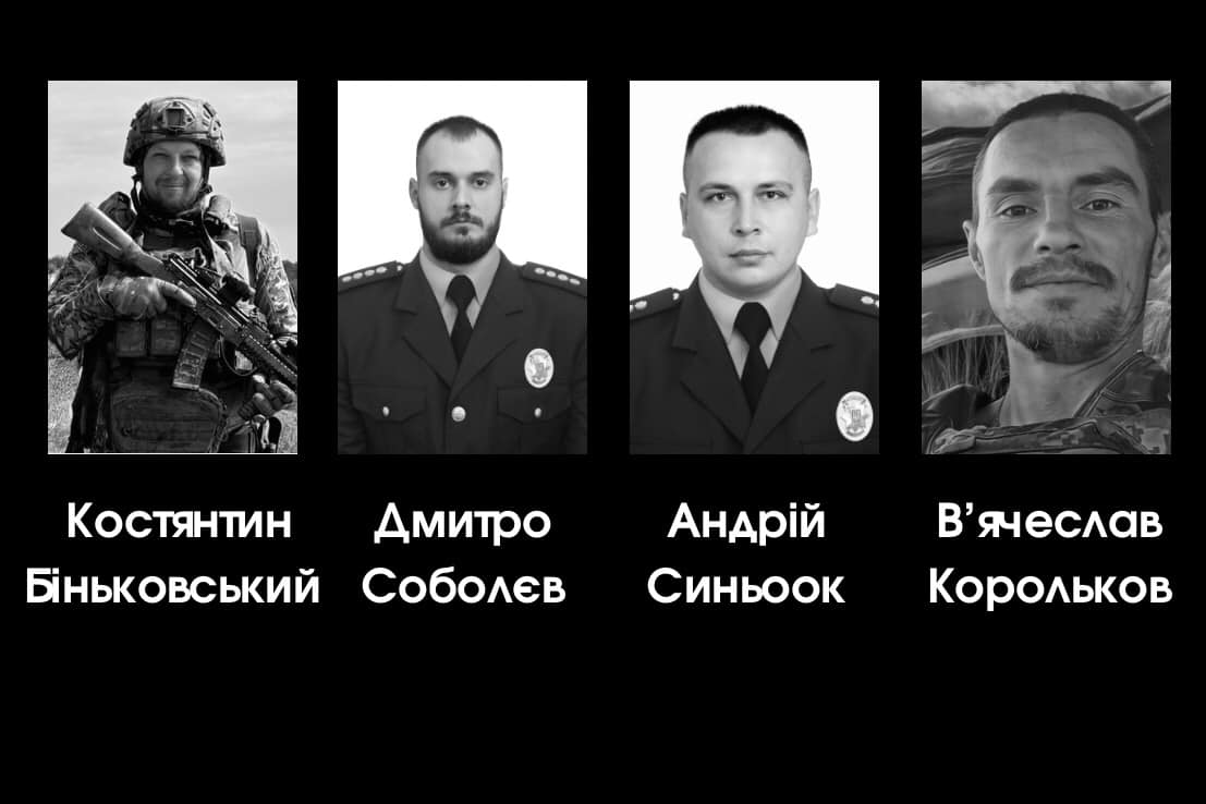 Черкаська громада схиляє голову в скорботі та висловлює щирі співчуття рідним і близьким Дмитра Соболєва, Костянтина Біньковського, Андрія Синьоока та В’ячеслава Королькова.