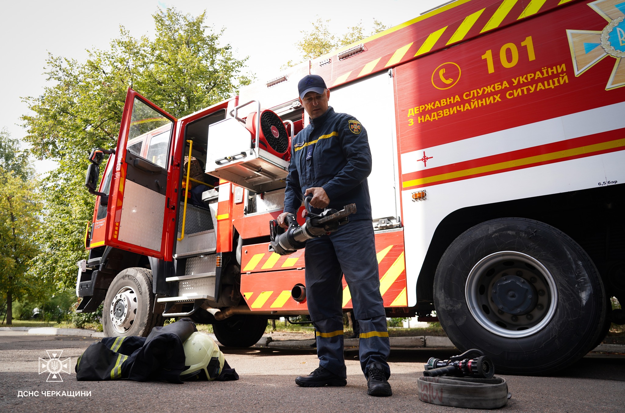 На подвір’ї на дітей чекала справжня пригода – вони мали змогу побачити пожежний автомобіль, приміряти бойовий одяг вогнеборців, потримати у руках пожежне обладнання та навіть посидіти в кабіні машини.
