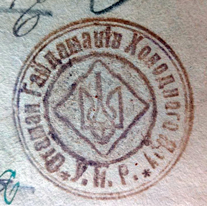 Несподівано для самого себе наткнувся на підшиті до справи цілих 5 порожніх бланків для документів, проштампованих печаткою з тризубом, написом «Отаман гайдамаків Холодного Яру» і чітким зазначенням «У.Н.Р.», як ототожнення незламних повстанців зі справою держави, територію якої окупували московські більшовики.