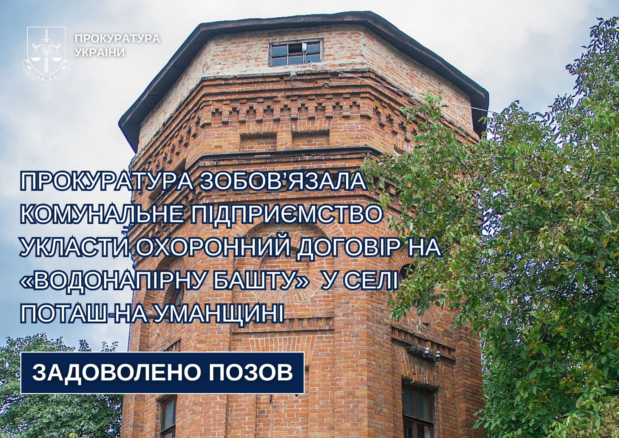 Уманська окружна прокуратура звернулася з позовом до суду в інтересах держави до комунального підприємства щодо зобов’язання укласти охоронний договір з Управлінням культури та охорони культурної спадщини Черкаської ОДА на щойно виявлений об’єкт культурної спадщини.