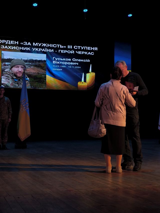 Відзнаки родинам передав очільник Черкаської ОВА Ігор Табурець. Серед них – орден «За мужність» ІІІ ступеня, почесна відзнака Черкаської міської ради «Захисник України – Герой Черкас» та відзнака «467 окремий піхотний батальйон».