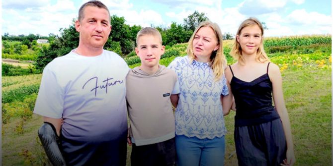 Батьків хвилювали думки, як пояснити все дітям, як вони відреагують. Роман та Єва бачили тривоги в родині, з телефонних розмов для себе зрозуміли, що в тата немає однієї руки. «Ми вже з лікарні подзвонили, сказали їм усю правду. Роман спершу плакав, а потім зібрався з духом. Тепер адаптувалися, з ніжною любов’ю горнуться до батька, допомагають», — мовила Олександра.