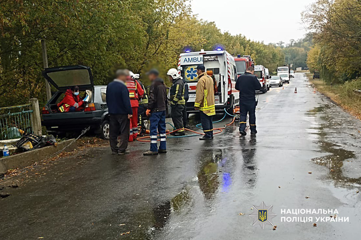 Як попередньо встановили поліцейські, водій автомобіля «Volkswagen Golf-1» не впоралася з керуванням, виїхала на зустрічну смугу руху та в'їхала у металевий відбійник. Внаслідок автопригоди постраждали 28-річна та 42-річний пасажири, їх з травмами госпіталізували до лікарні.