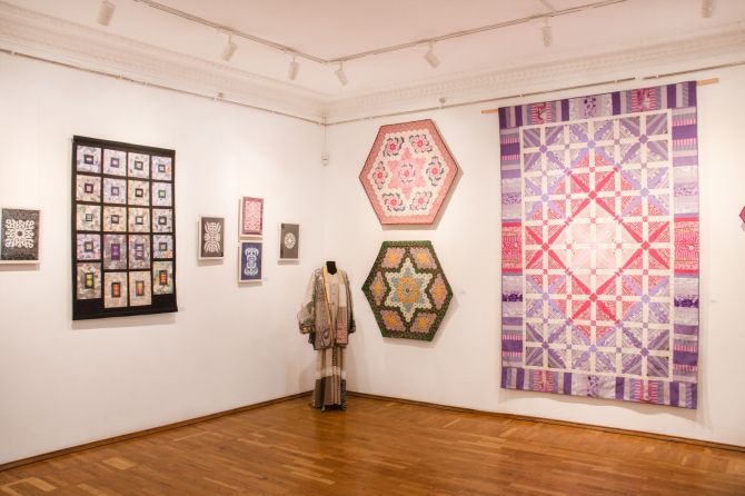 В експозиції представлені різні напрями творчості авторки: паперові витинанки, роботи у техніці англійського шиття, квілти з чоловічих сорочок, джинсових виробів та тканин, врятованих від утилізації.